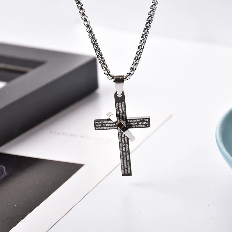 english cross -- black/square pearl chain 70cm