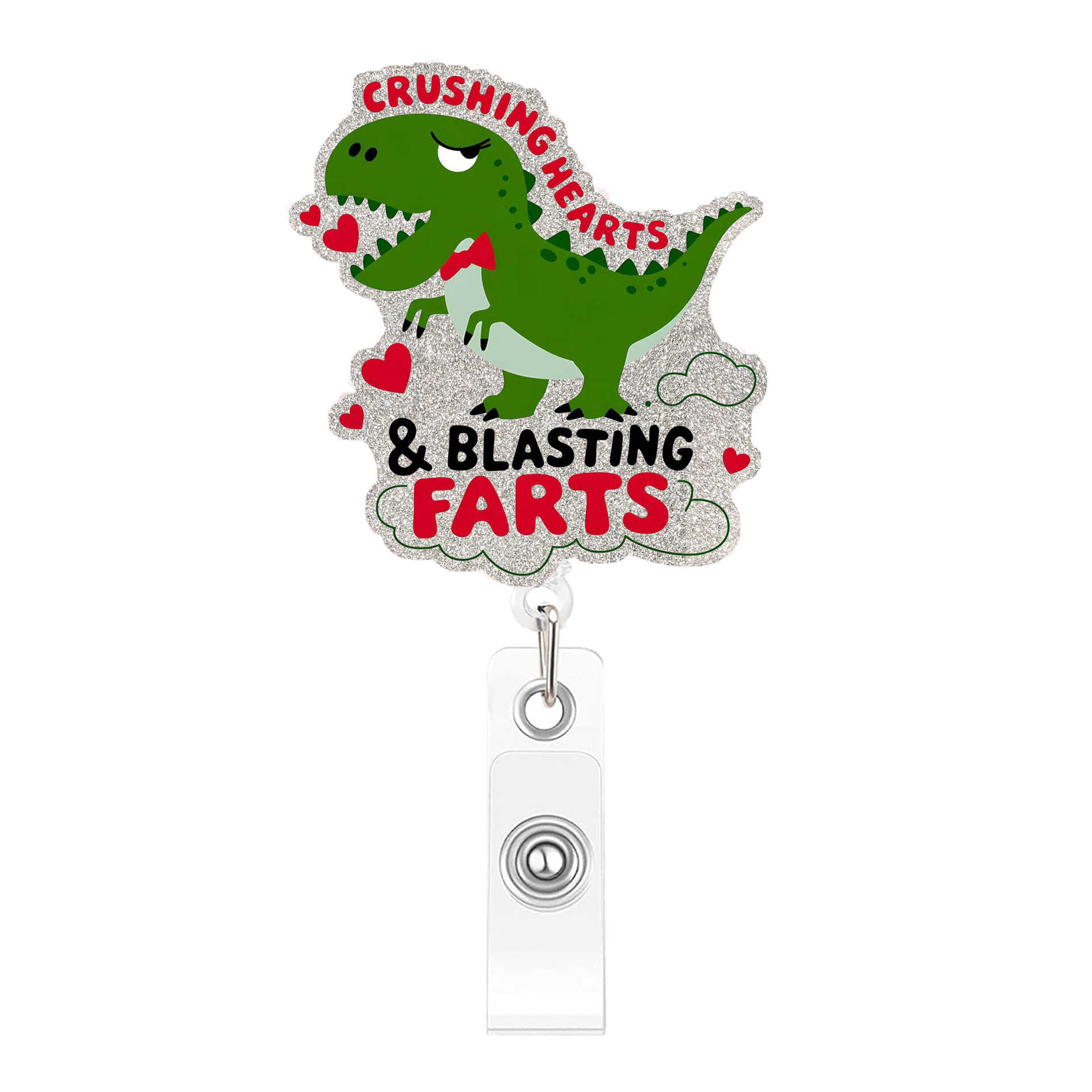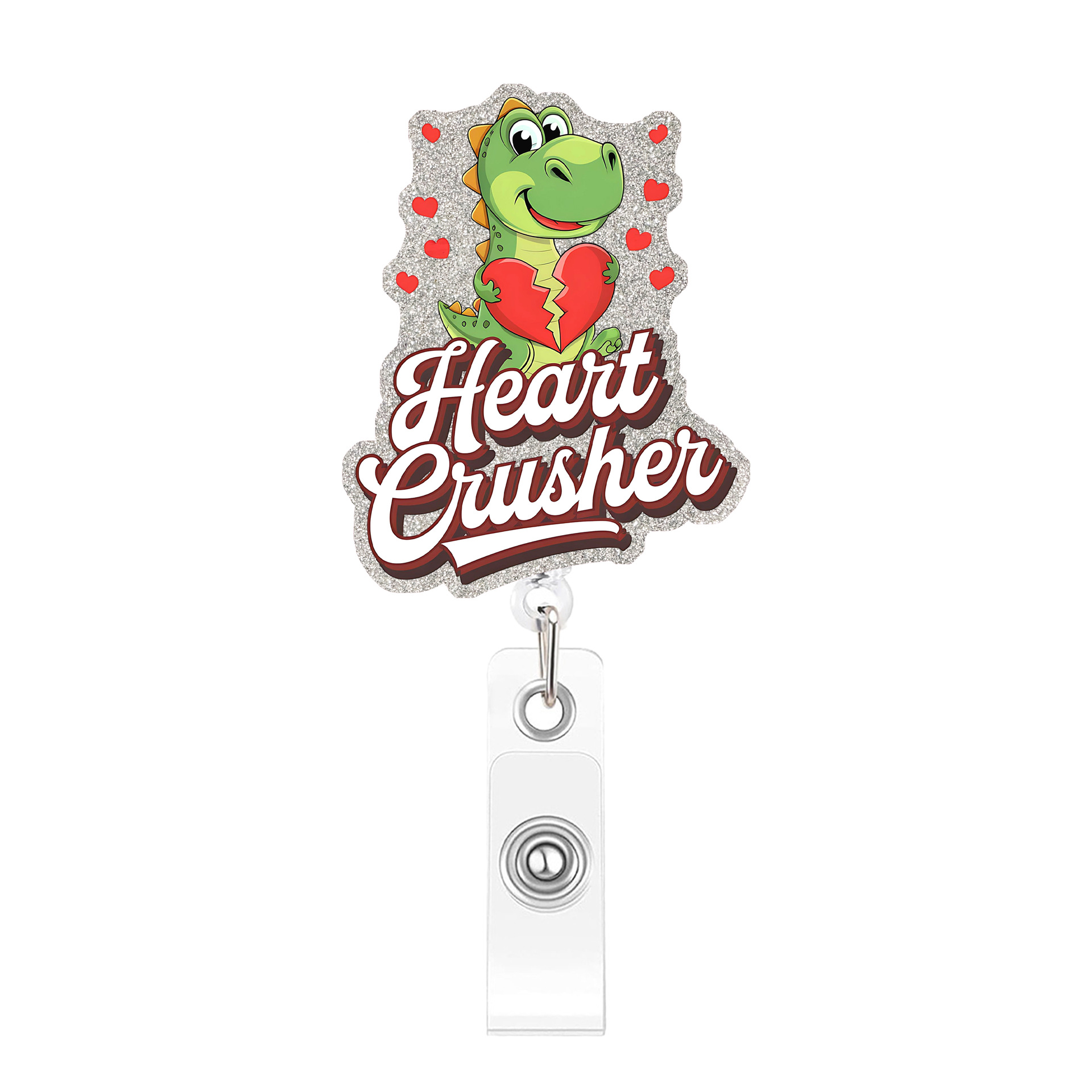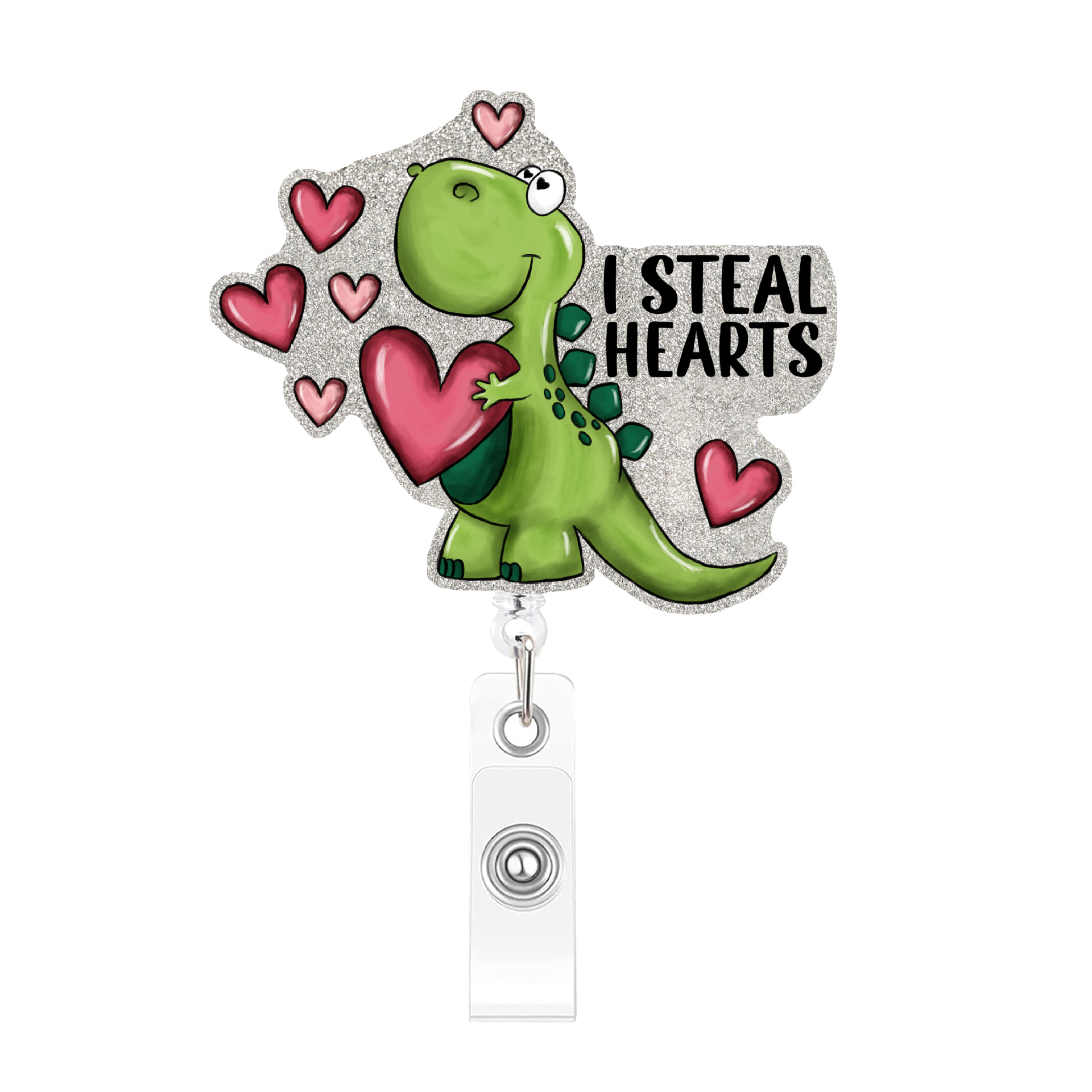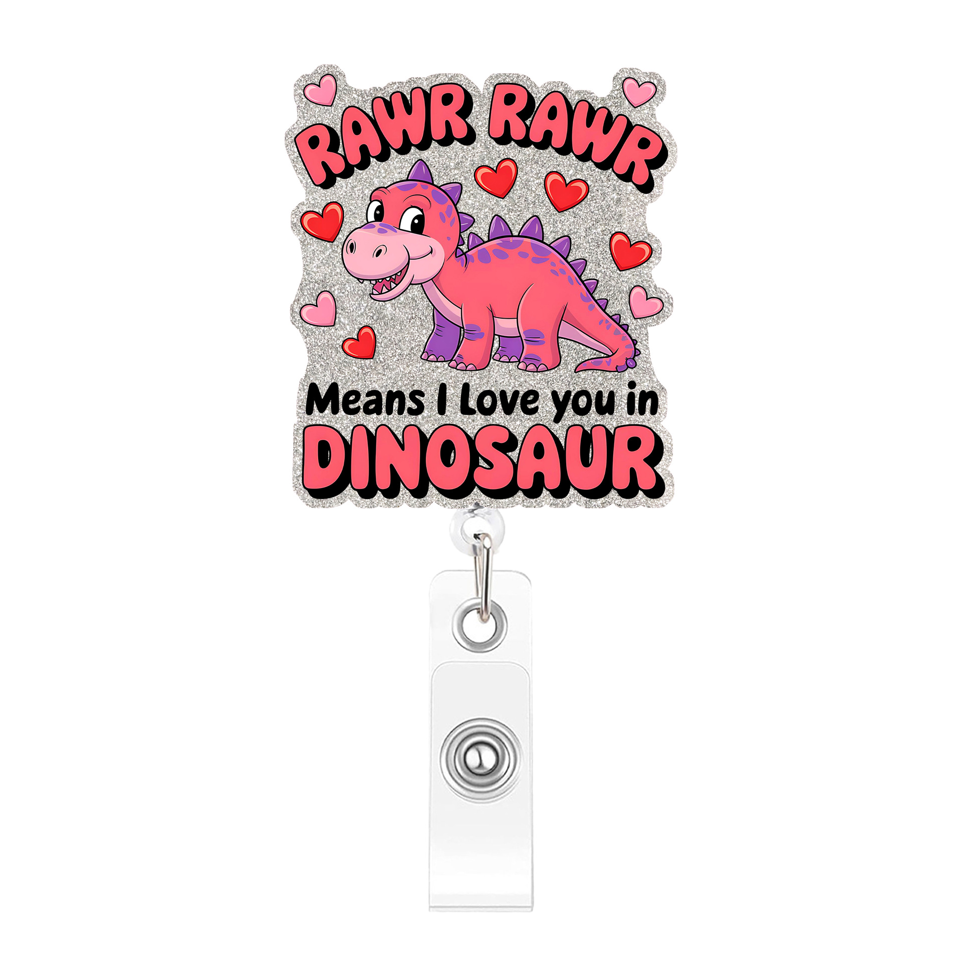 Pink Heart Dinosaur Extendable Badge Holder