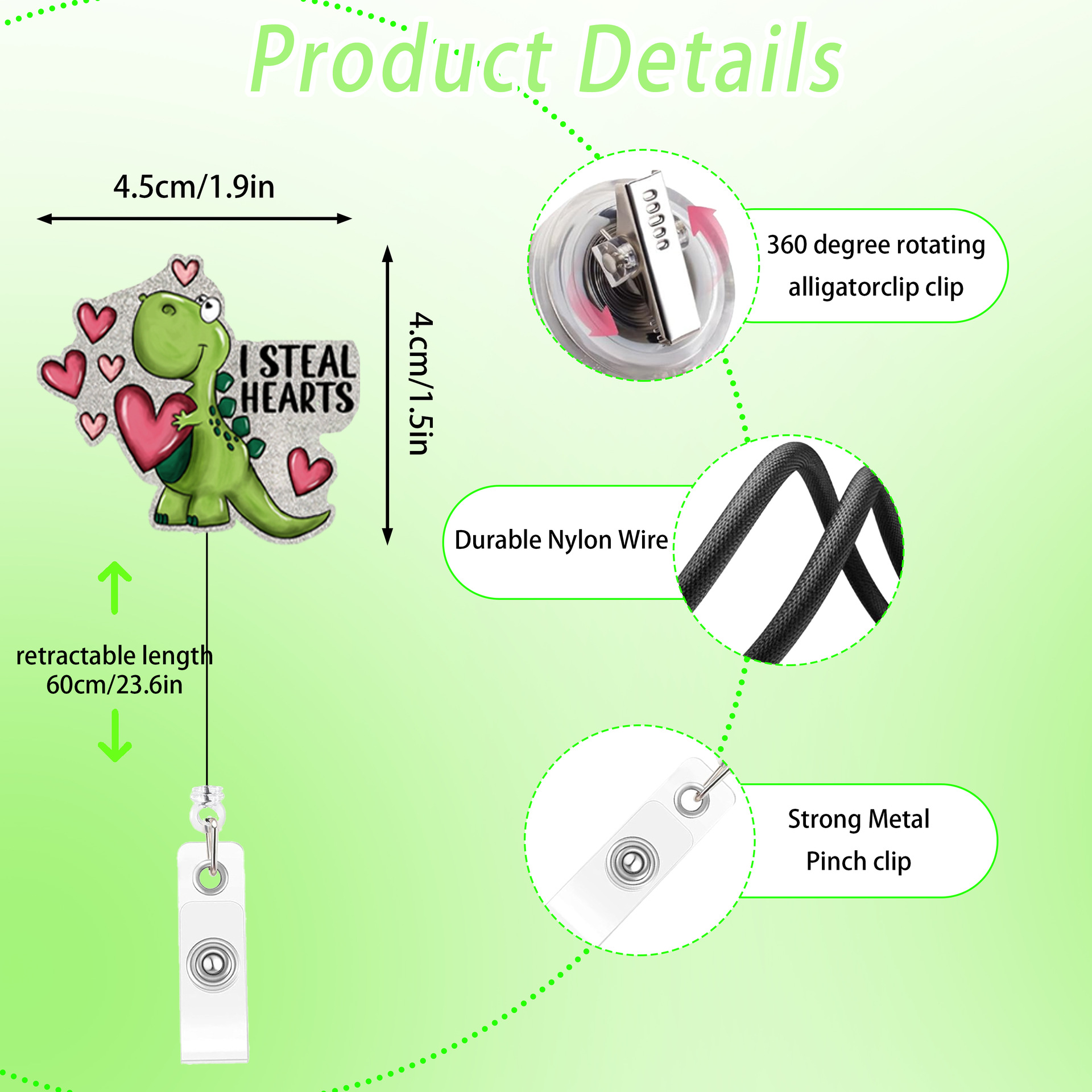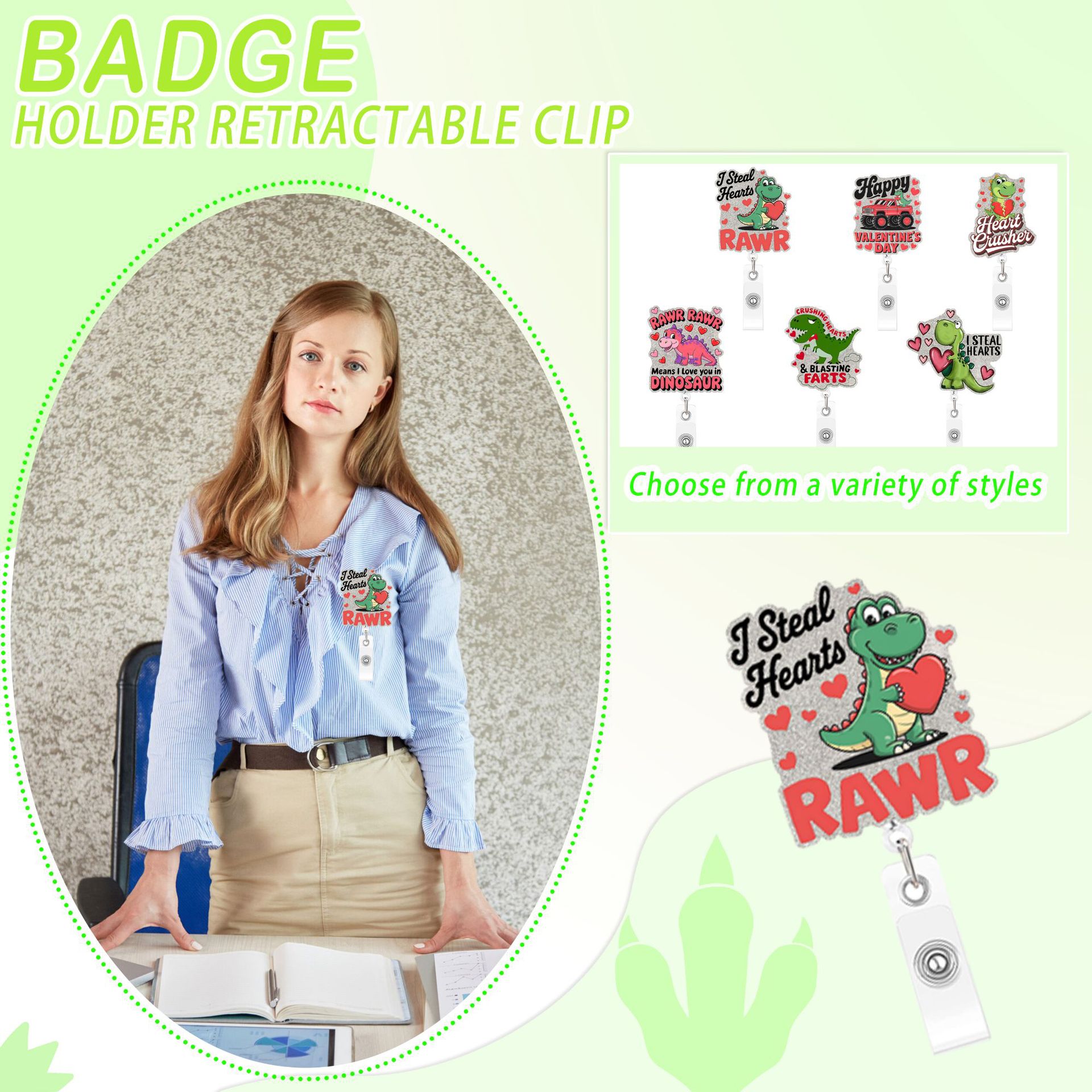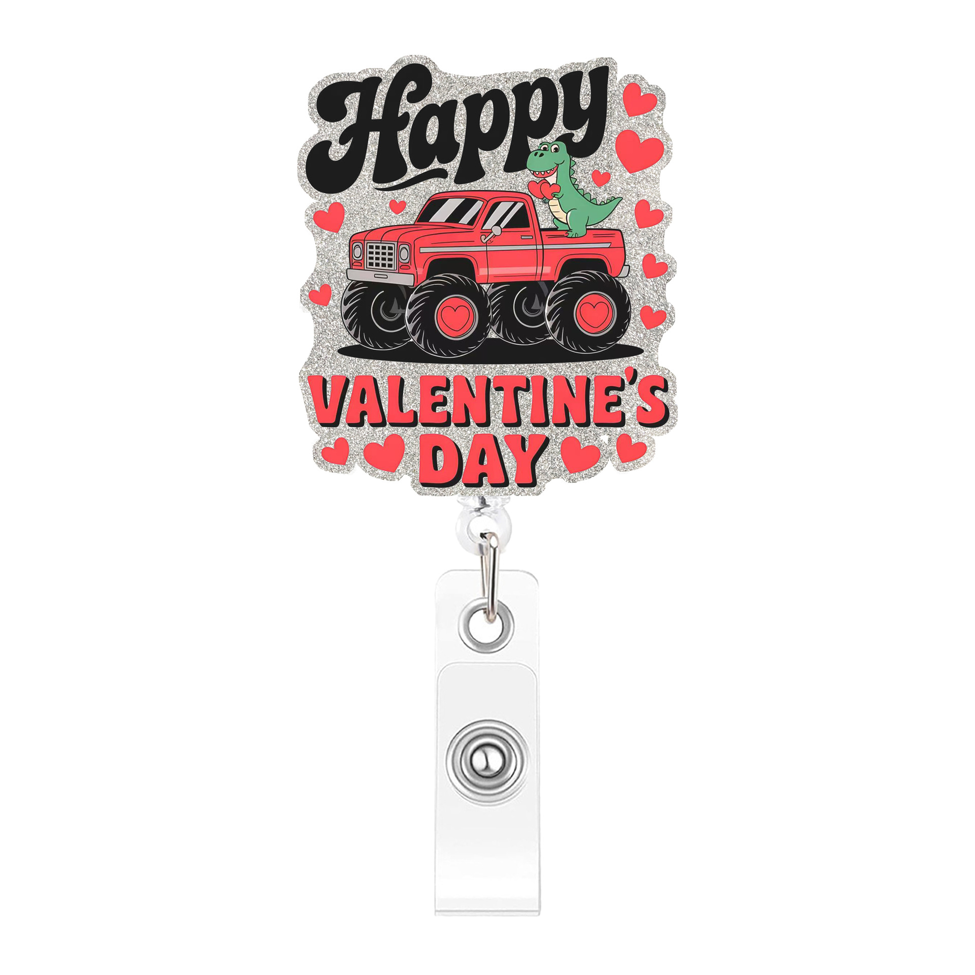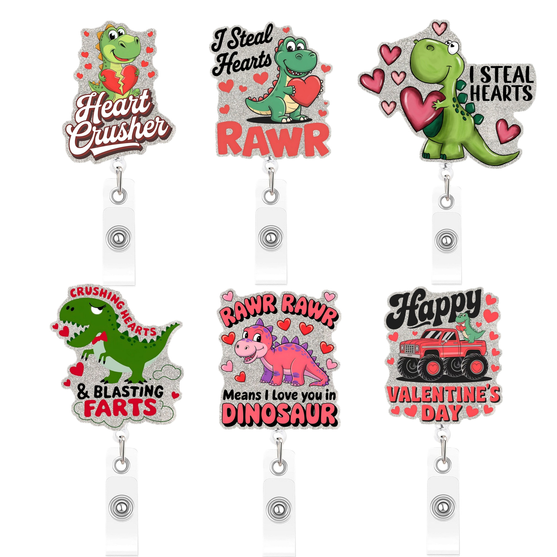 Pink Heart Dinosaur Extendable Badge Holder