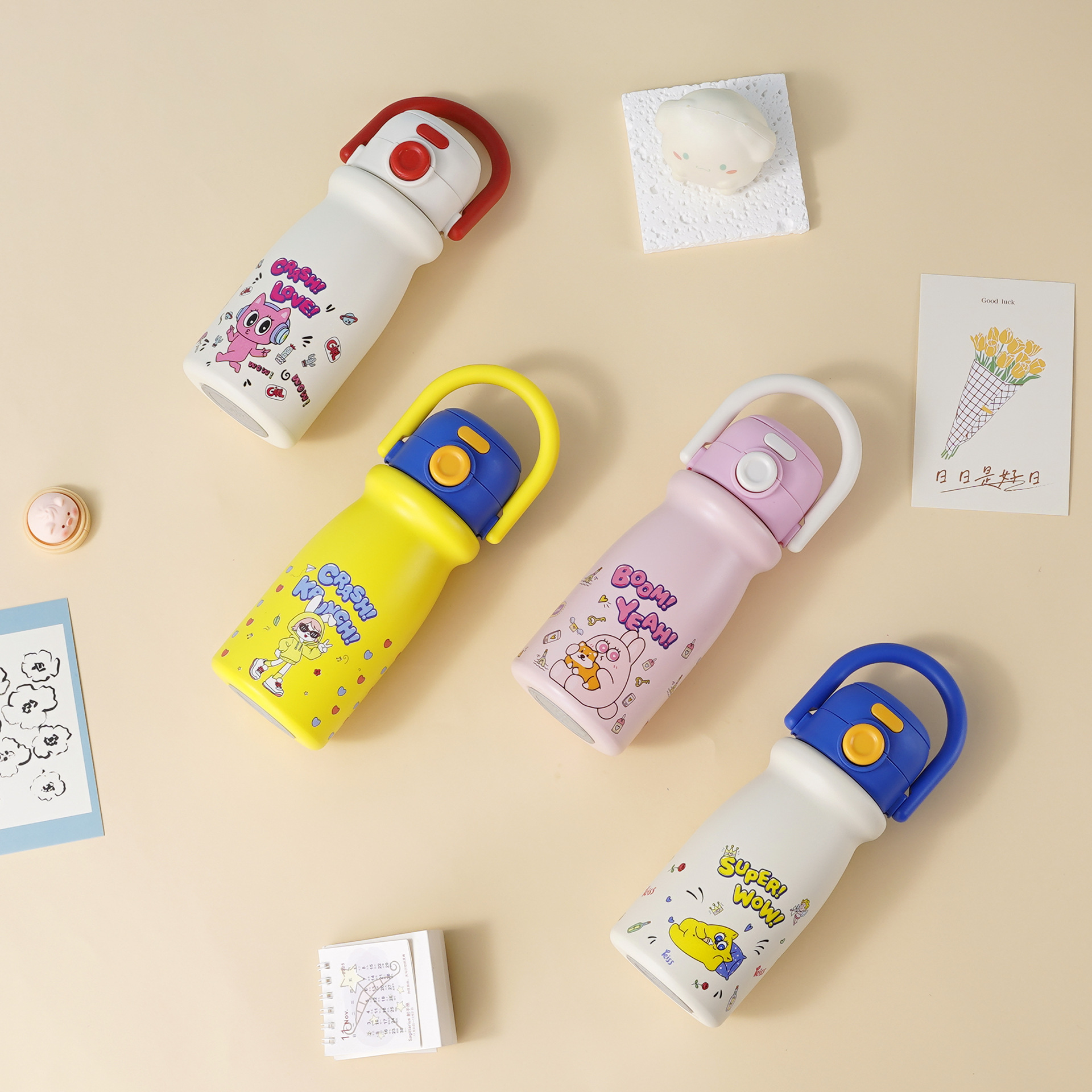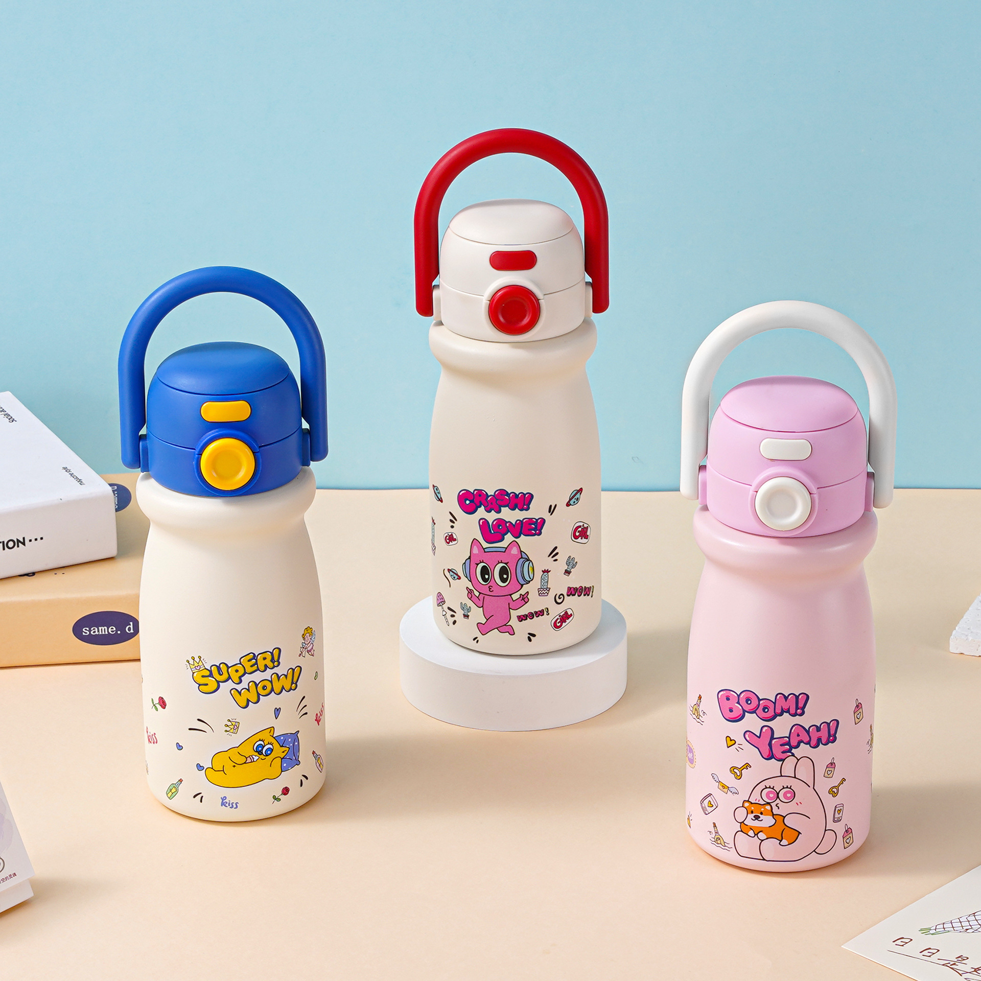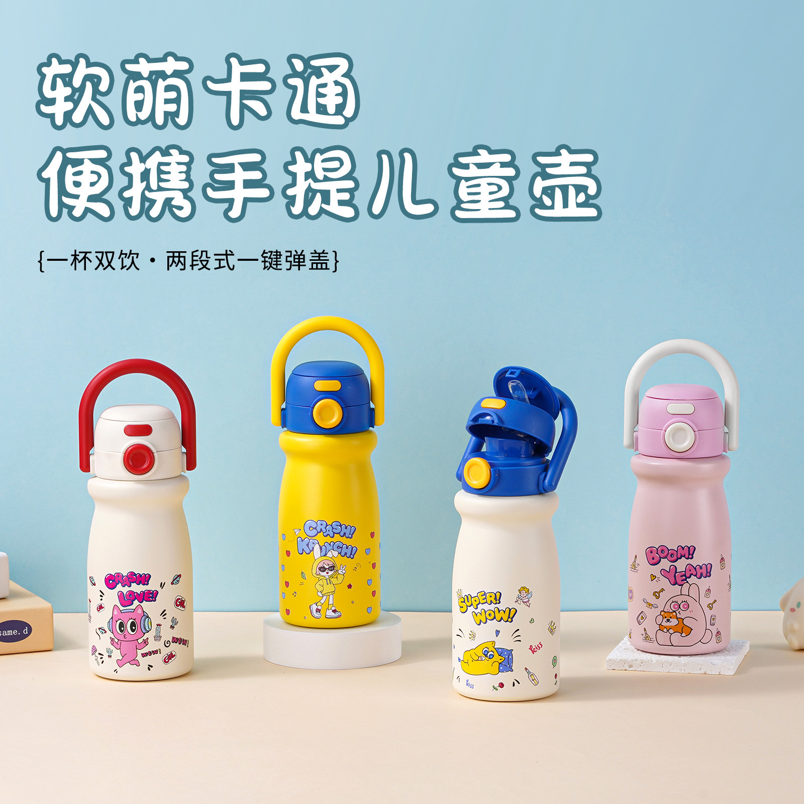 Children's cartoon cup with high-quality appearance and portable insulated water bottle with customizable straw