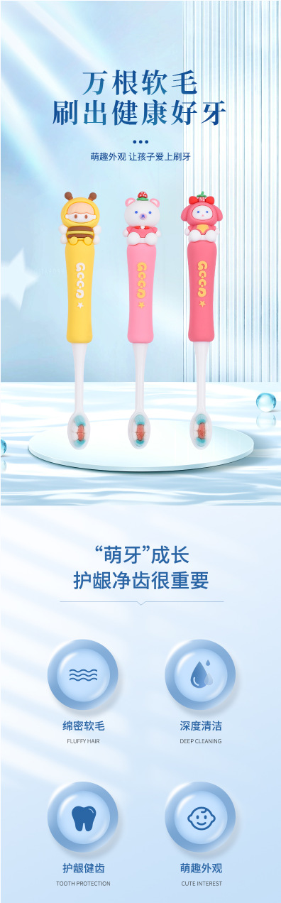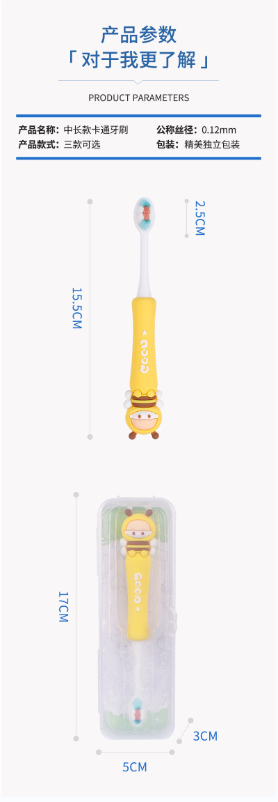 middle-aged children's white bristle yellow bumblebee toothbrush