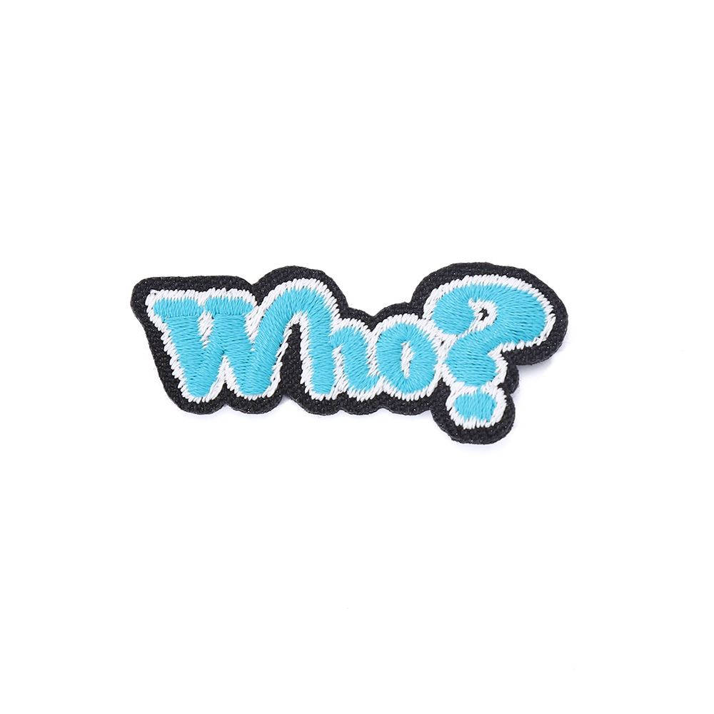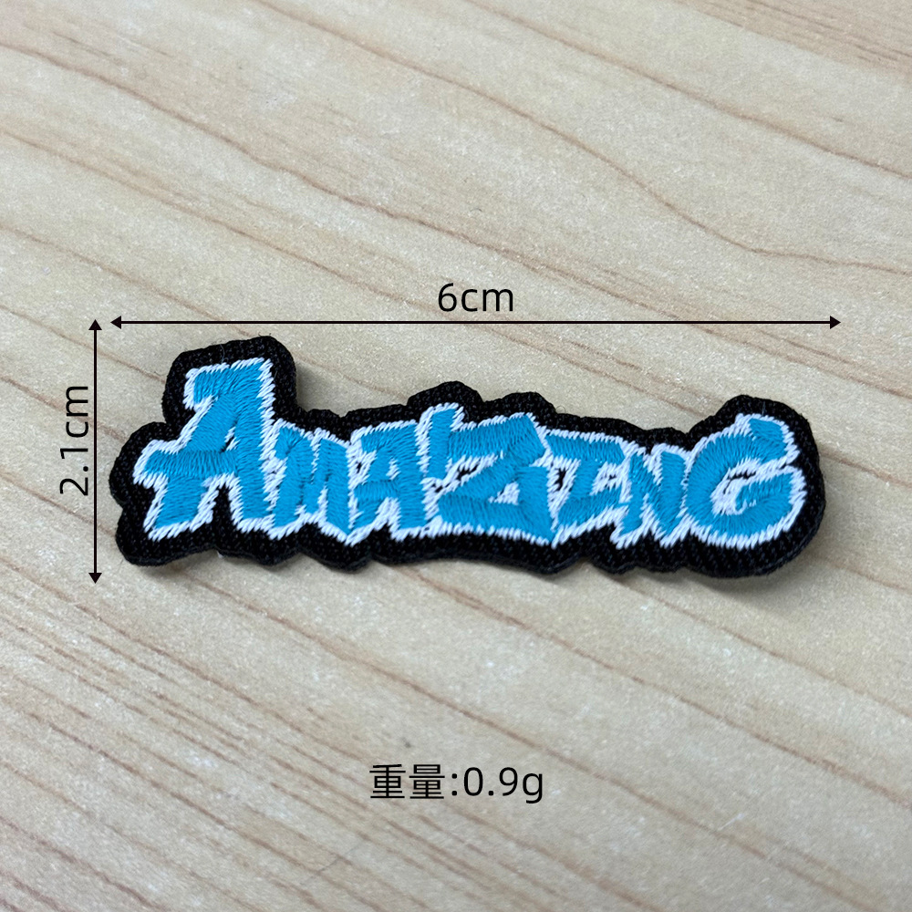 knitted embroidery * irregular * letters * blue and black * length: 4.7 width: 1.9