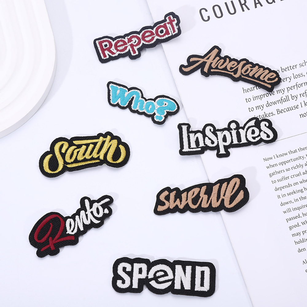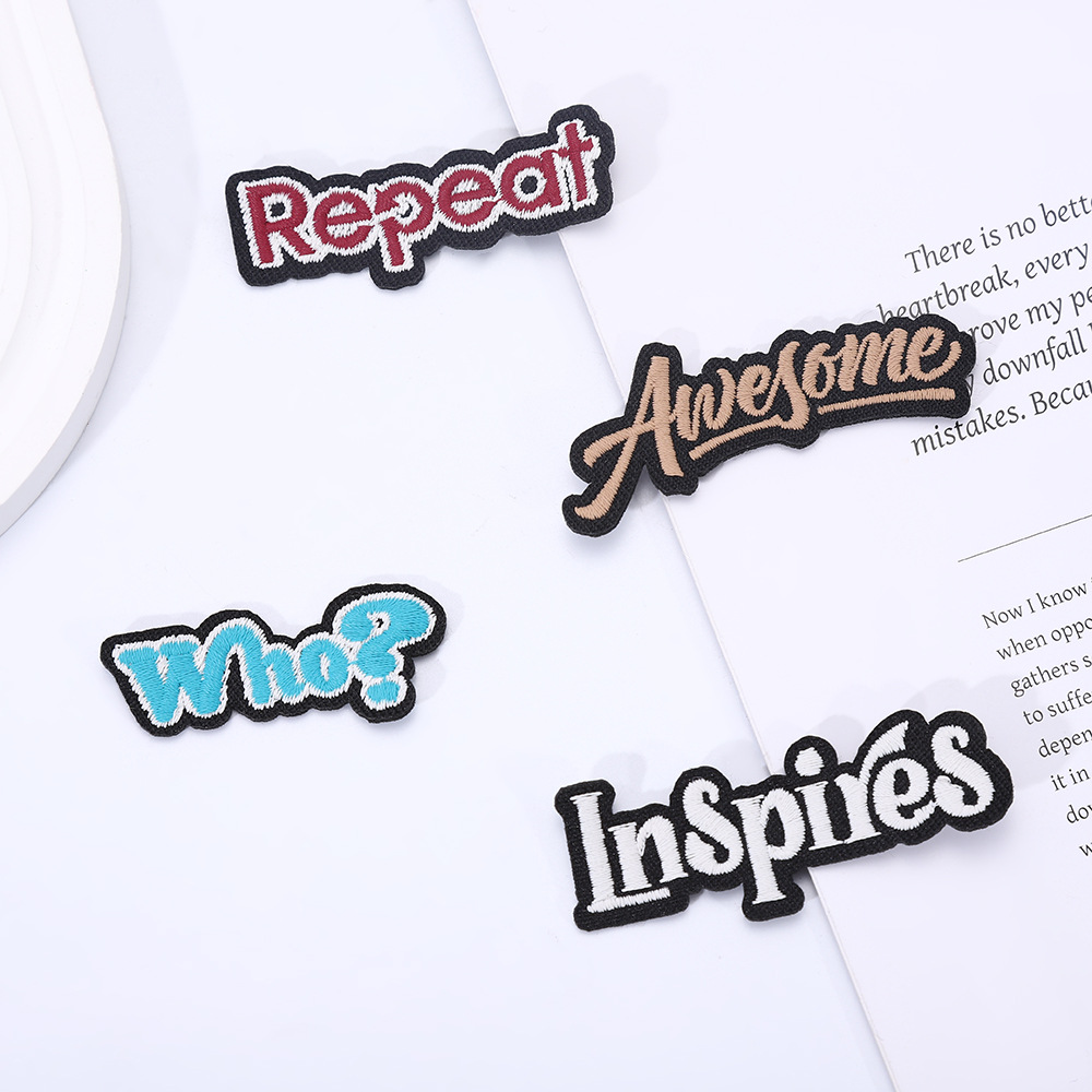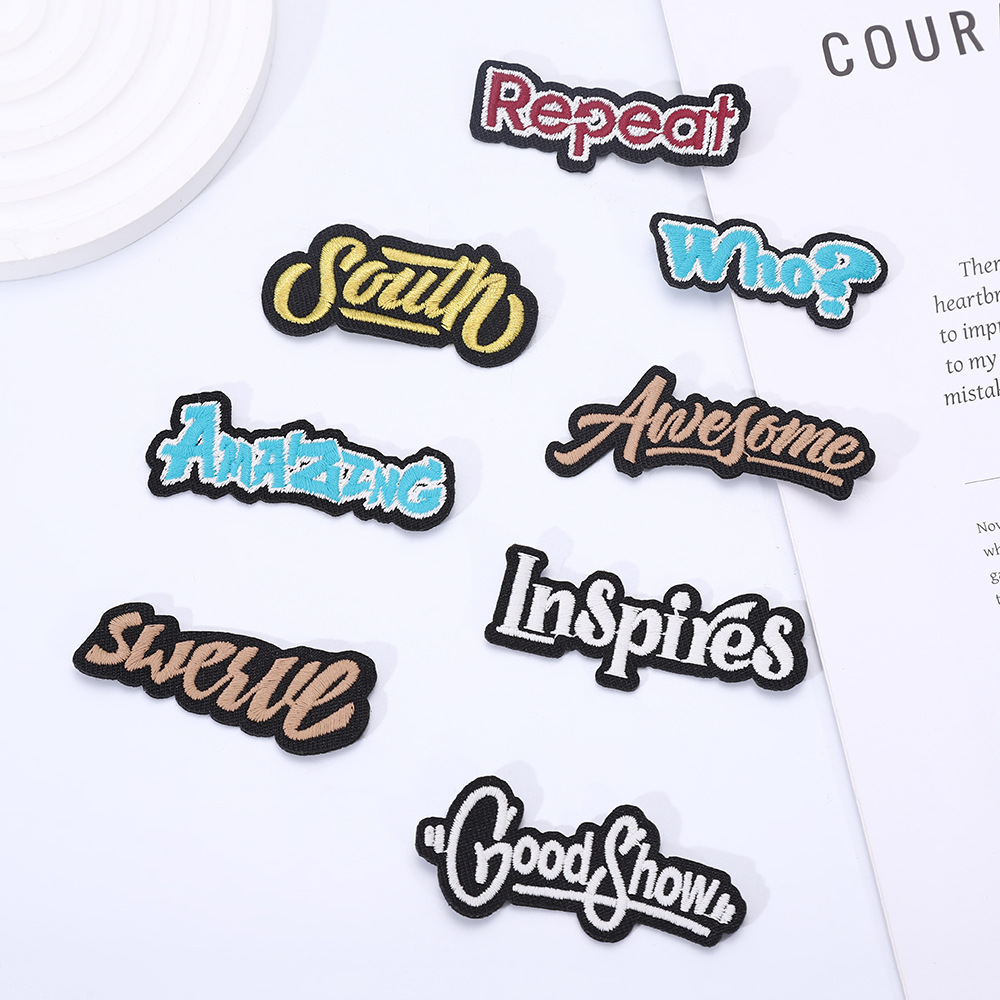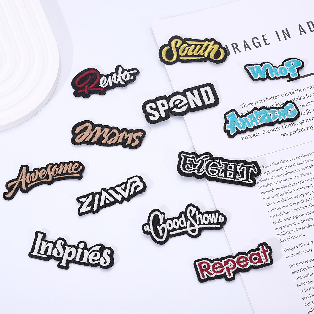 knitted embroidery * black and white * irregular * letters * length: 6 width: 2.2