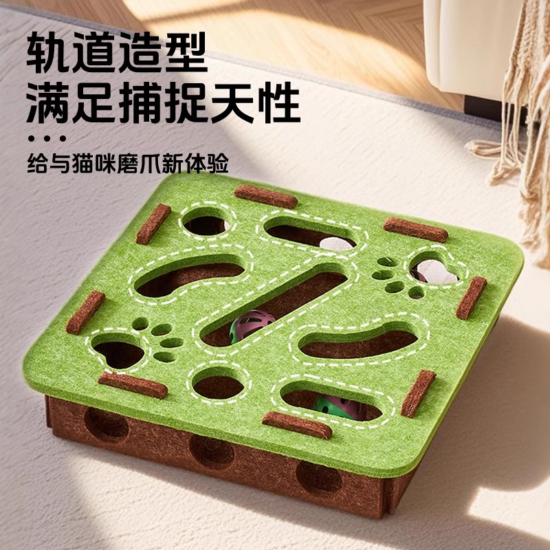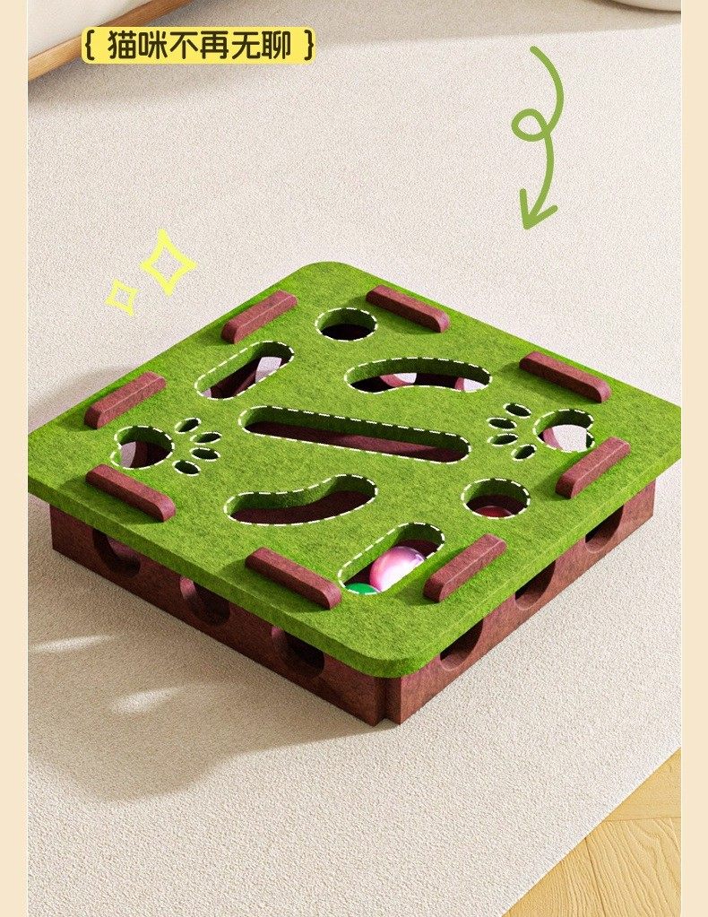 [square green and brown] educational cat puzzle maze ball-grabbing fun
