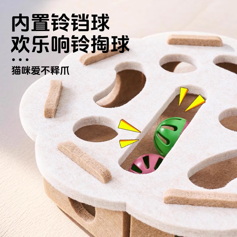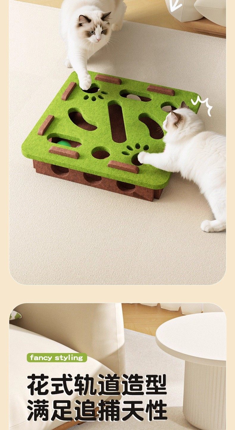 [beige and white striped] educational cat puzzle maze ball-grabbing fun