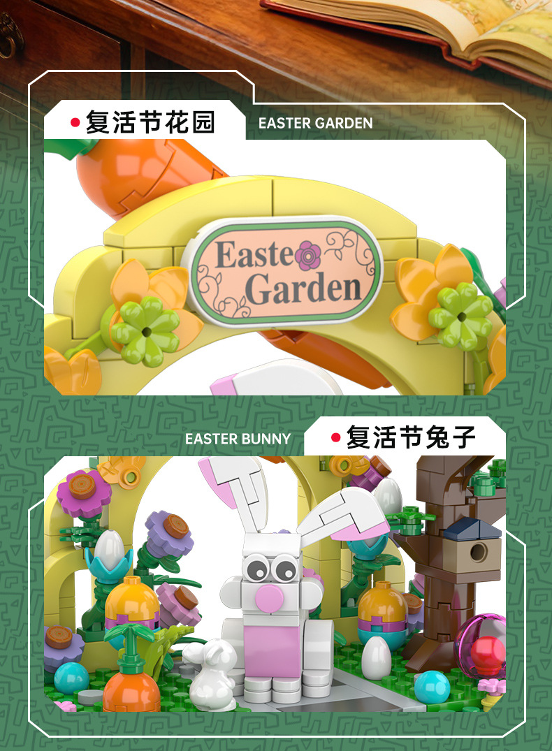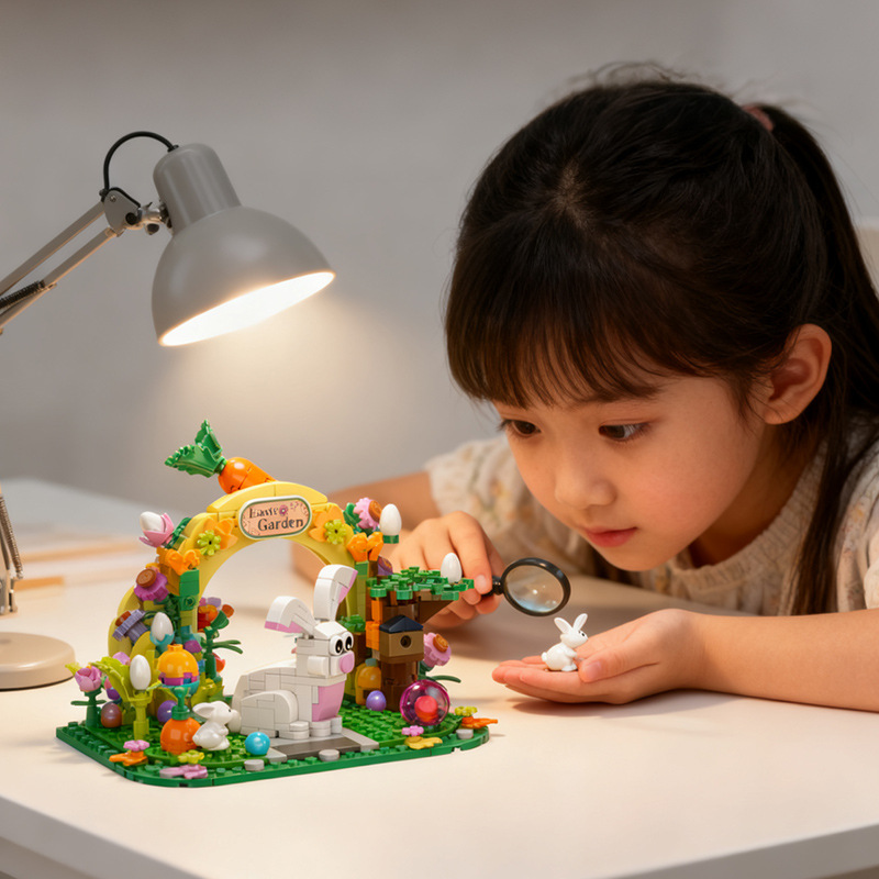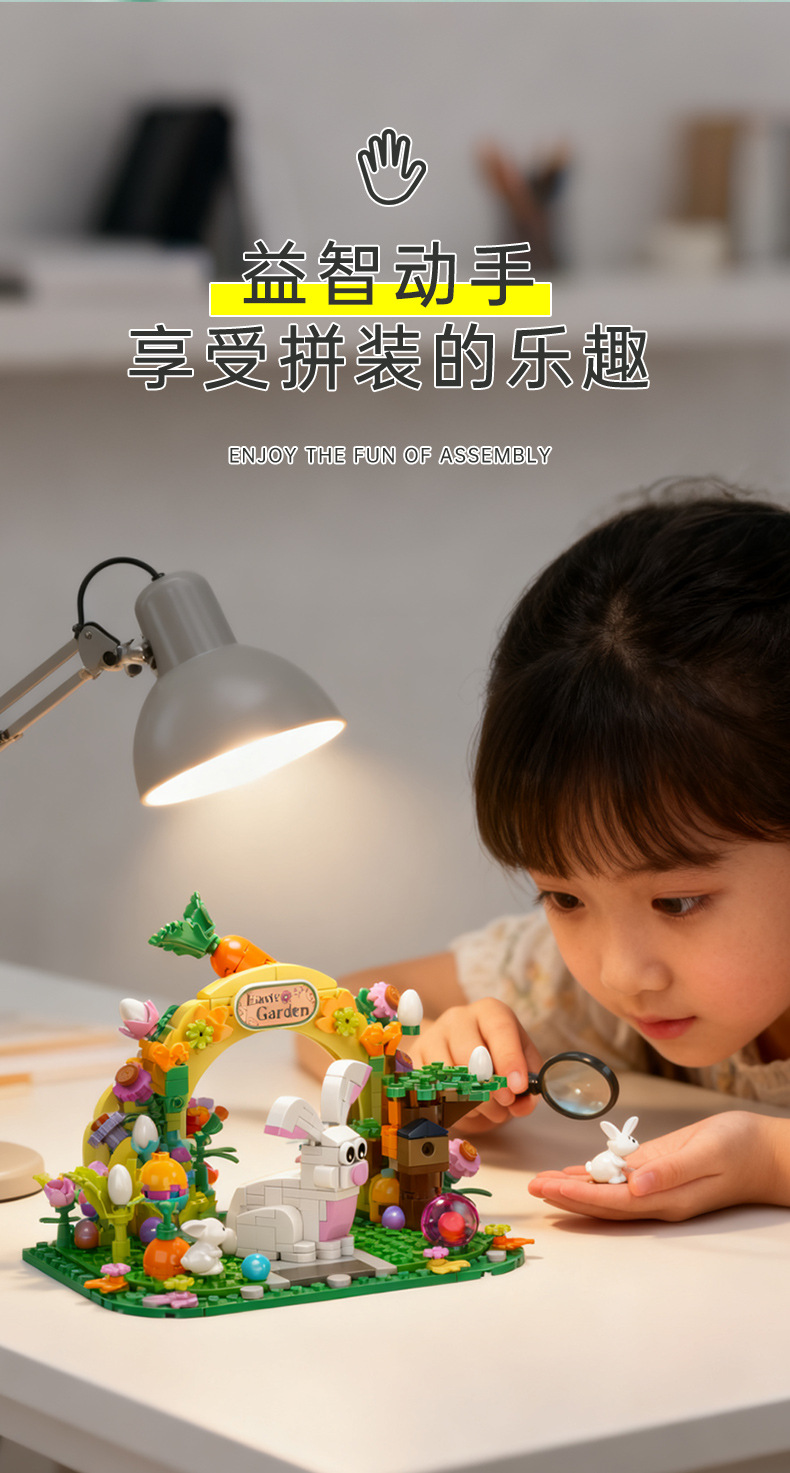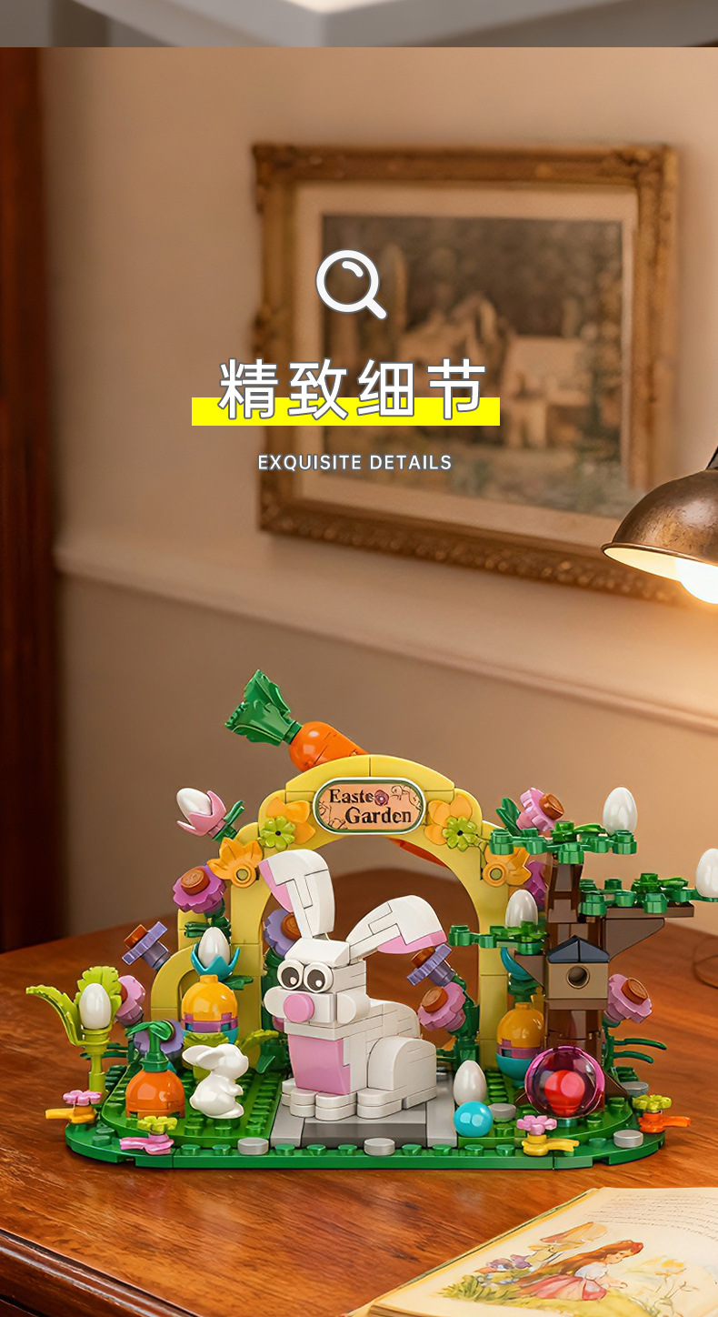 kaiyi cross-border easter cartoon ip garden rabbit compatible lego small particle building blocks bank gift toys