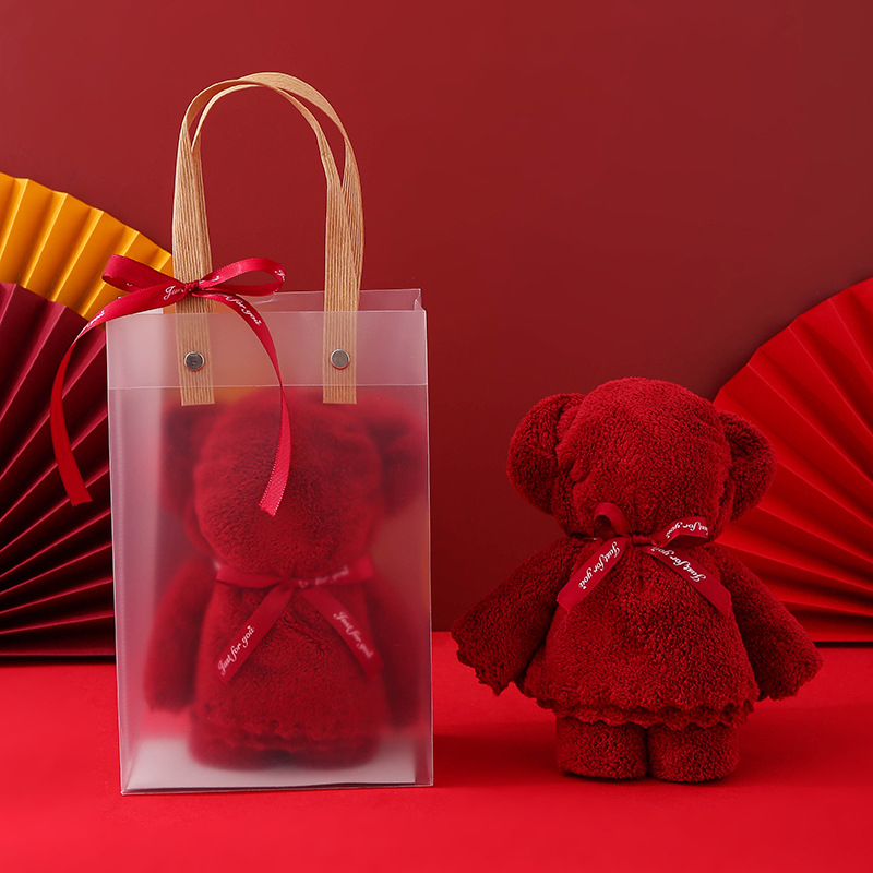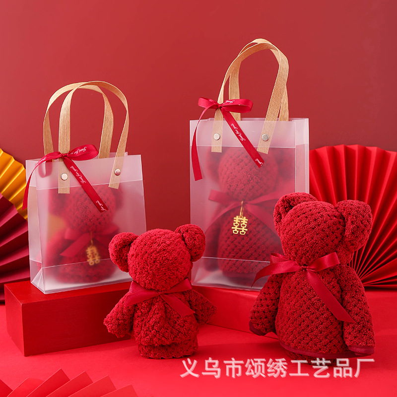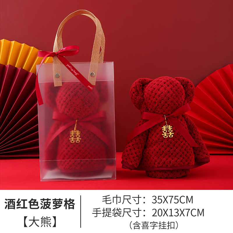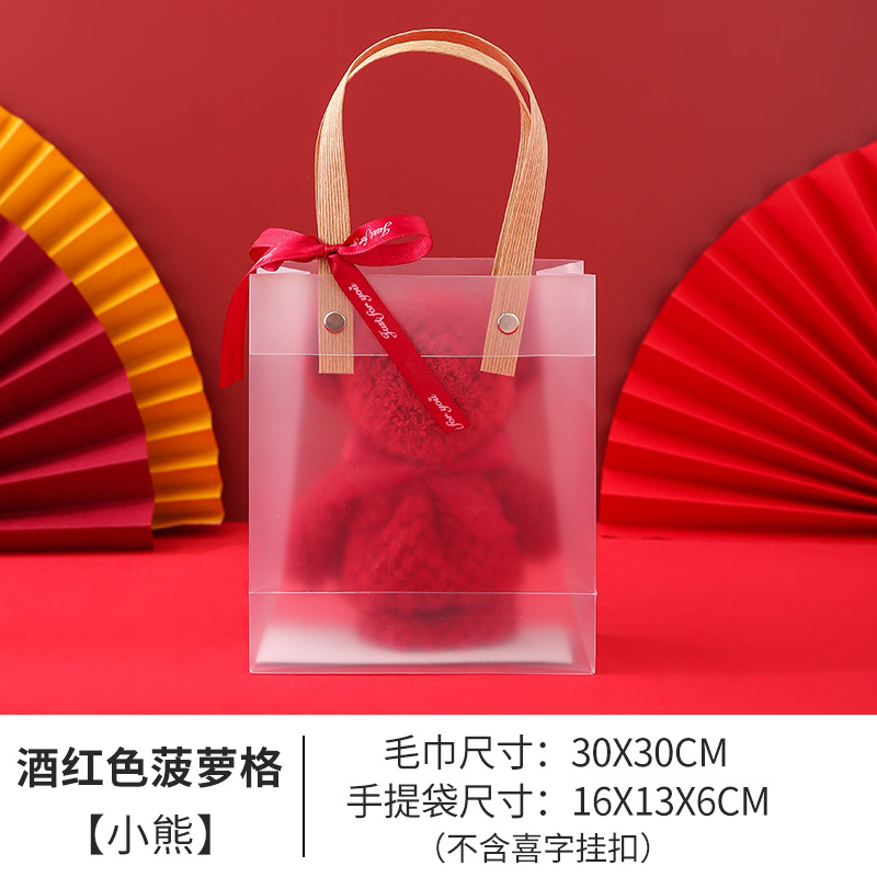 coral velvet wine red big bear + handbag] no xi character hanging buckle
