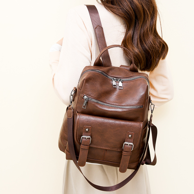 in stock wholesale 2024 new korean style retro women's backpack fashion soft leather tassel multifunctional travel backpack