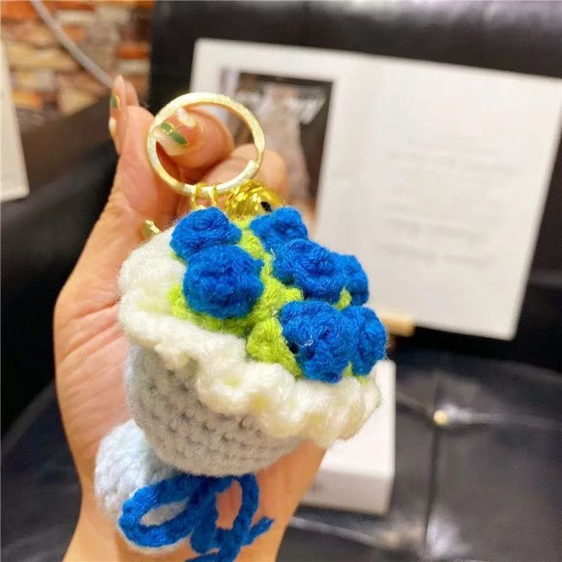 knitted bridal bouquet [blue roses] + gold keychain + bell