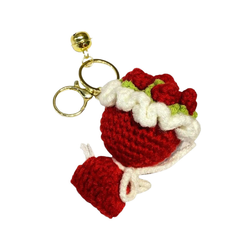 knitted bridal bouquet [red rose] + golden keychain + bell