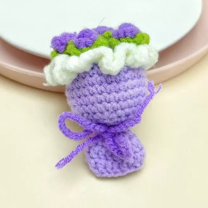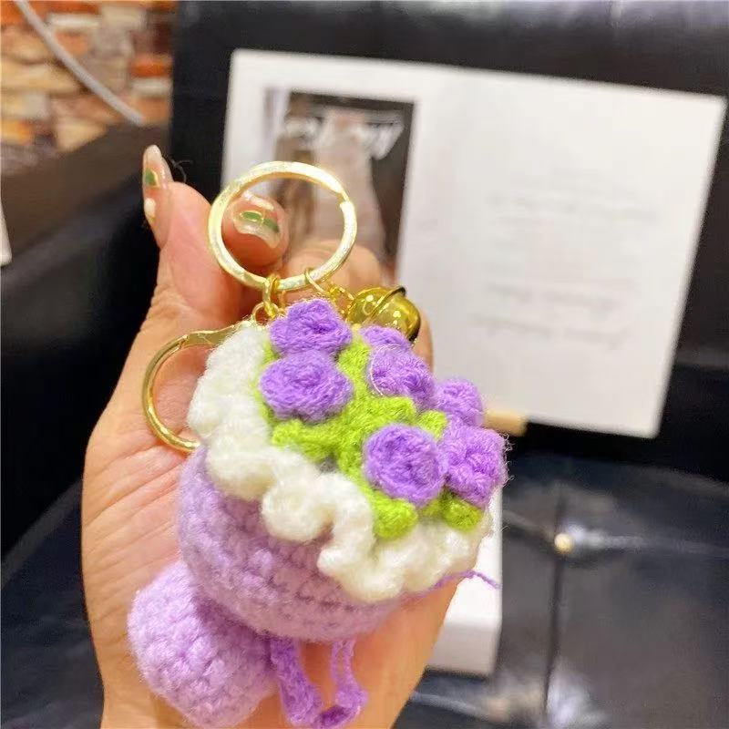 knitted bridal bouquet [purple rose] + gold keychain + bell