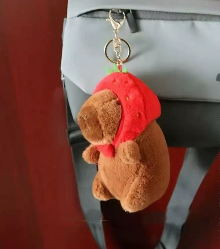 capybara [with a strawberry hat] 12cm large size + brown keychain + bell