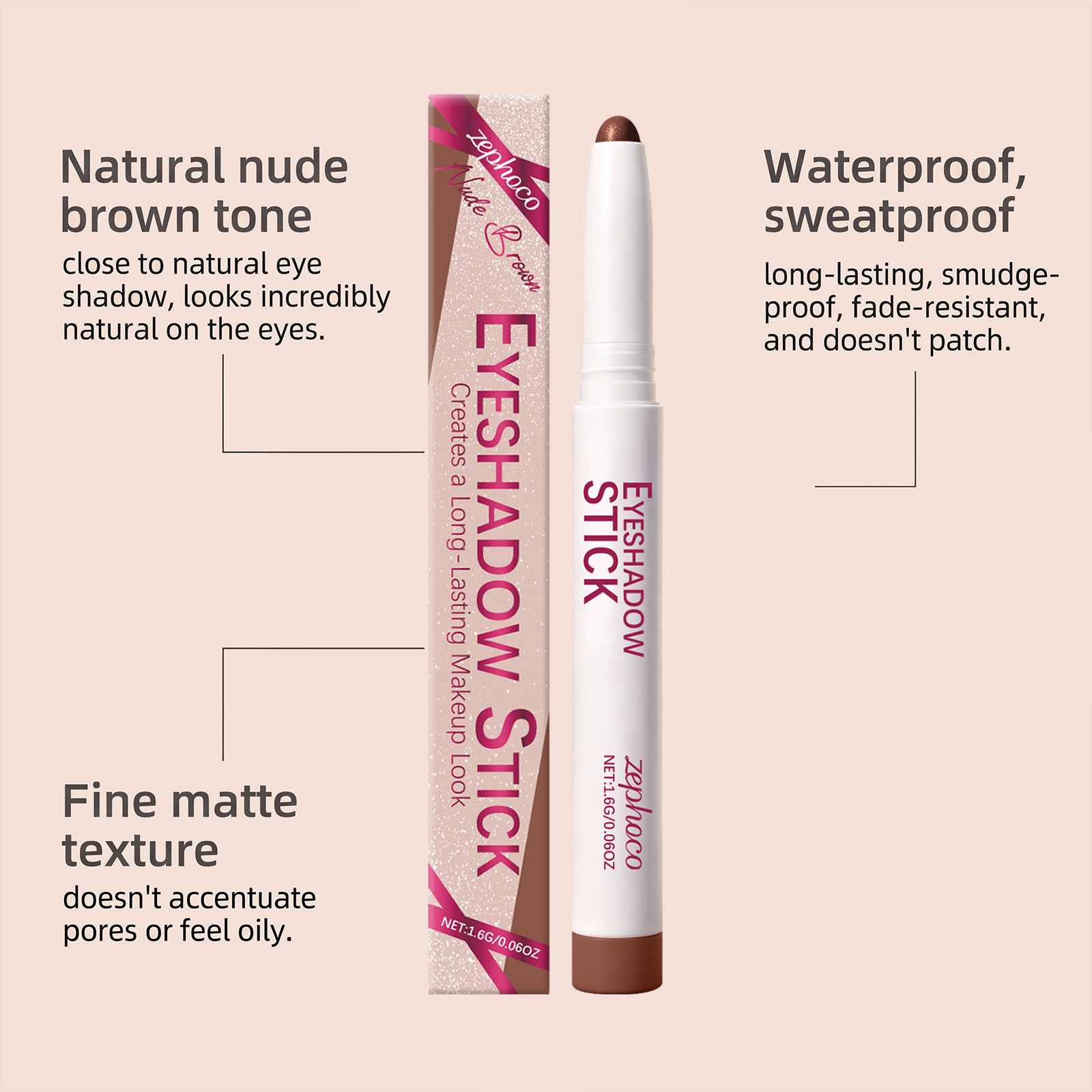 zephoco nude brown eyeliner pen silky soft mist texture natural easy to smudges easily outline daily commuter makeup