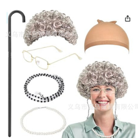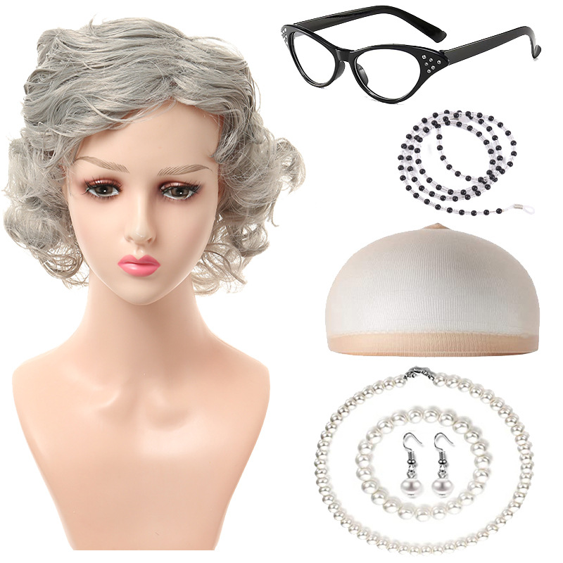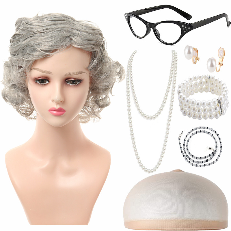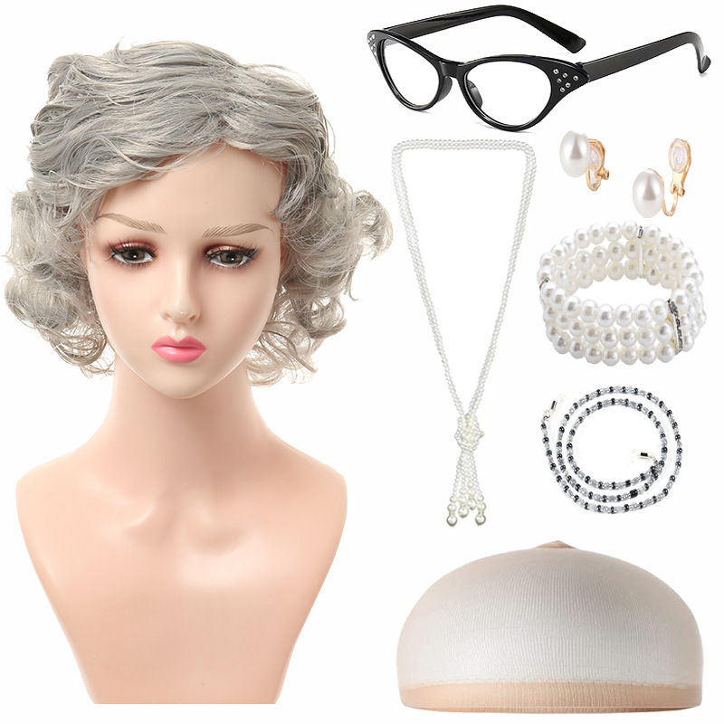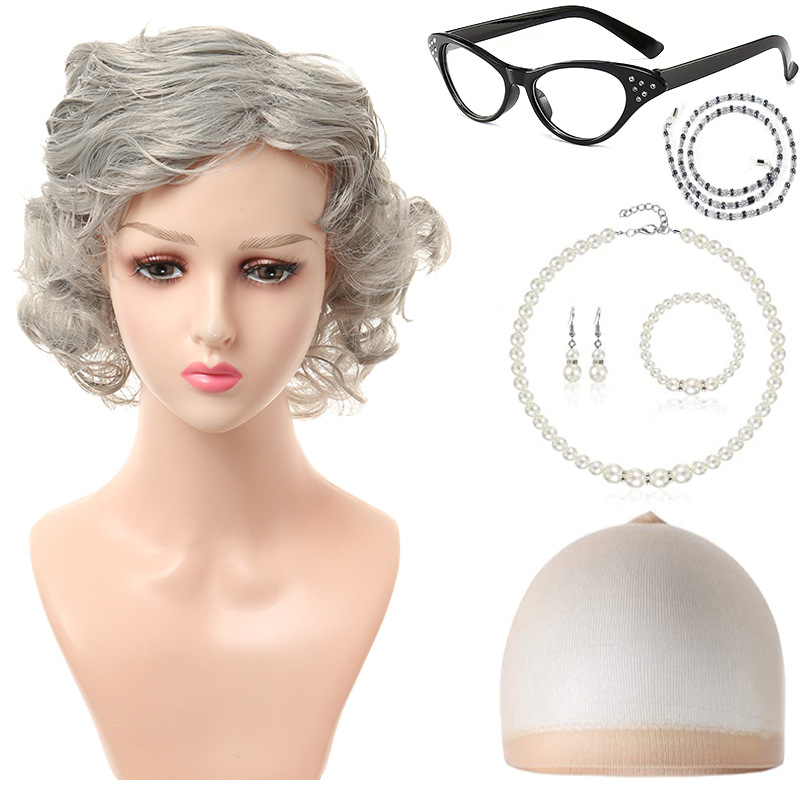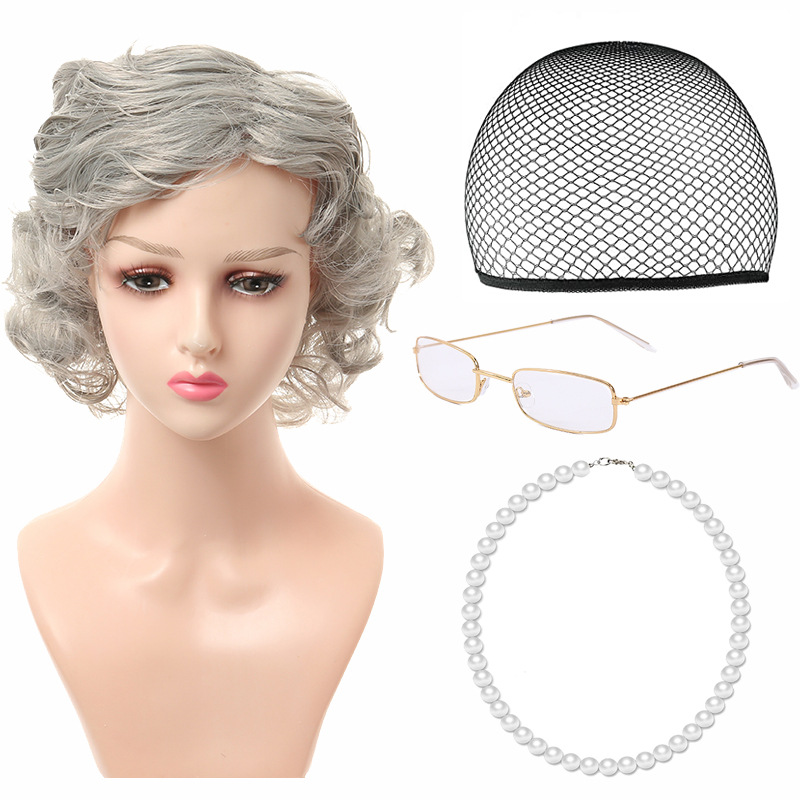 light gray short curly hair 4-piece set
