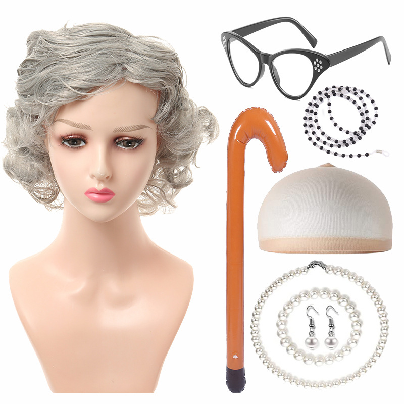 light gray short curling bangs suit eight-piece set