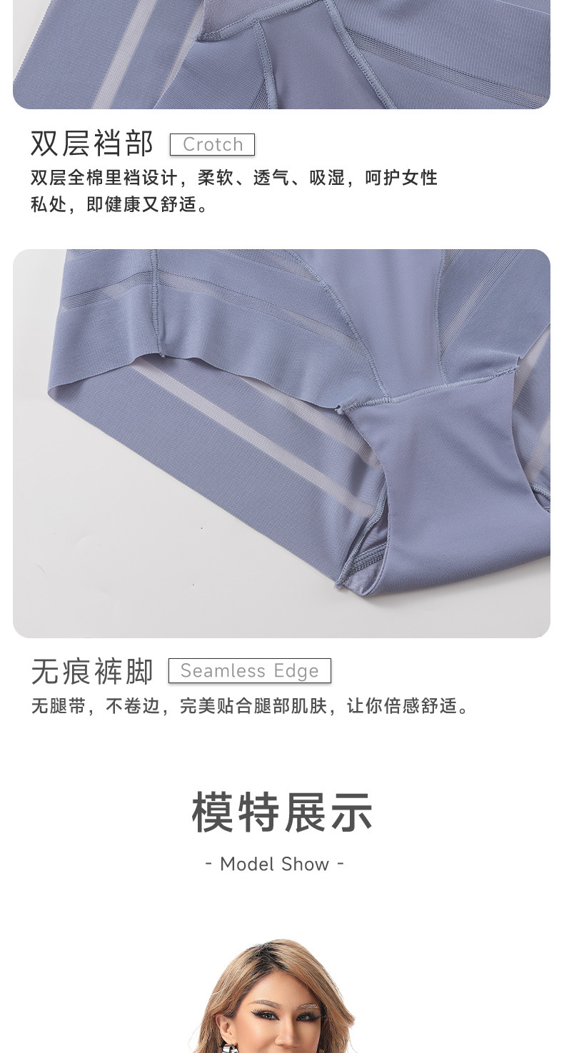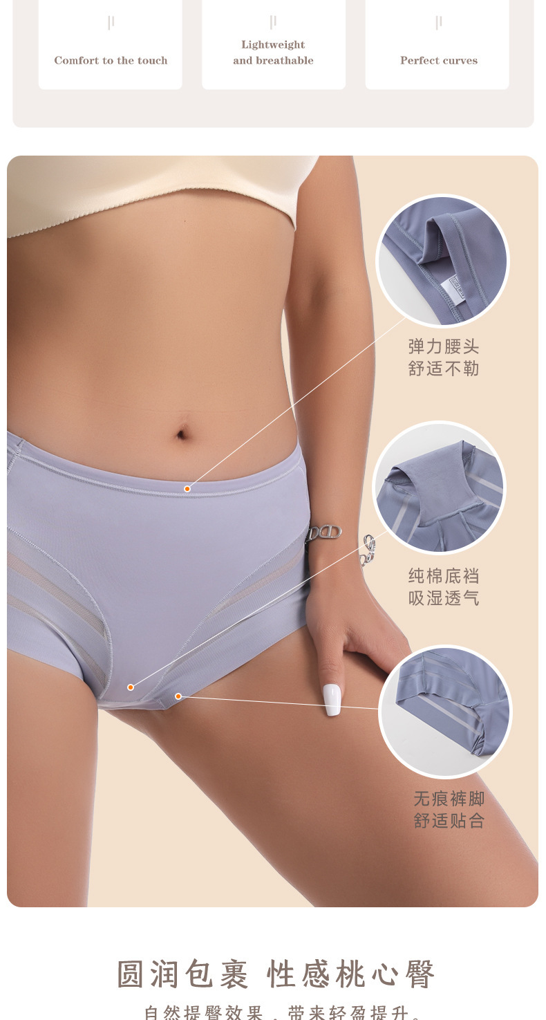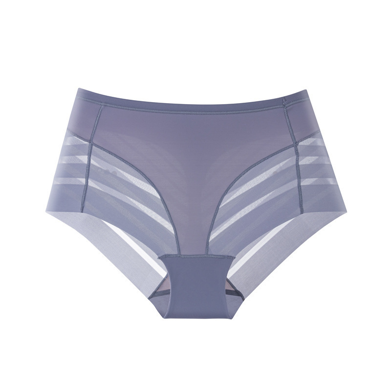 cross-border foreign trade women's underwear summer ice silk high elastic mid waist plus size breathable mesh sexy lace women's briefs