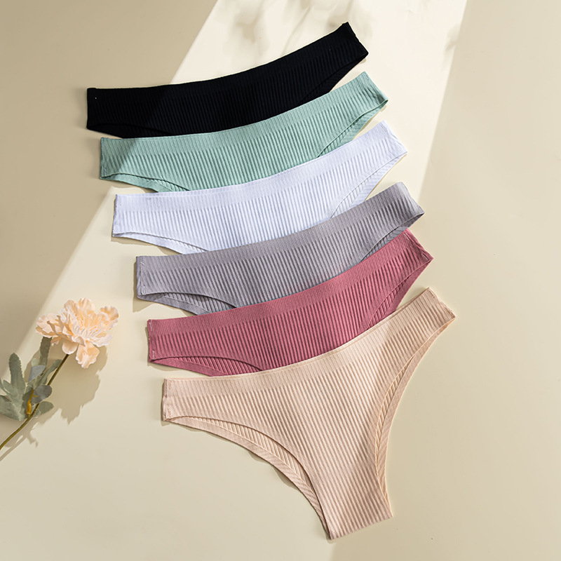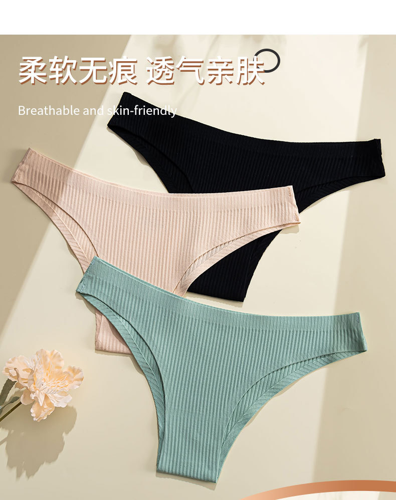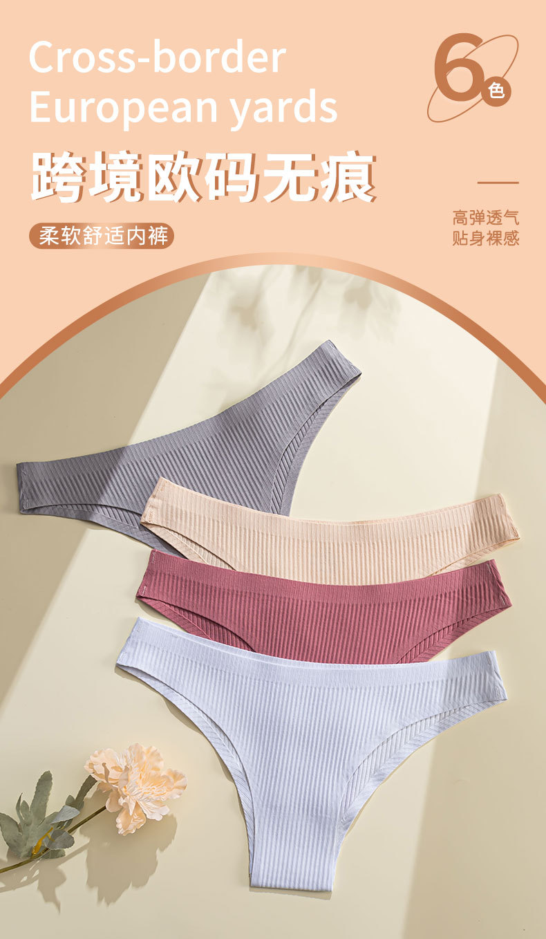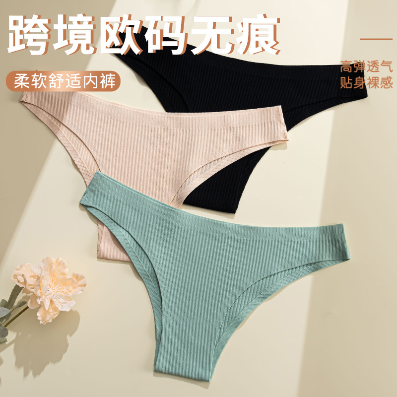 european and american new one-piece fit thread underwear low waist pure cotton seamless comfort simple solid color women's briefs
