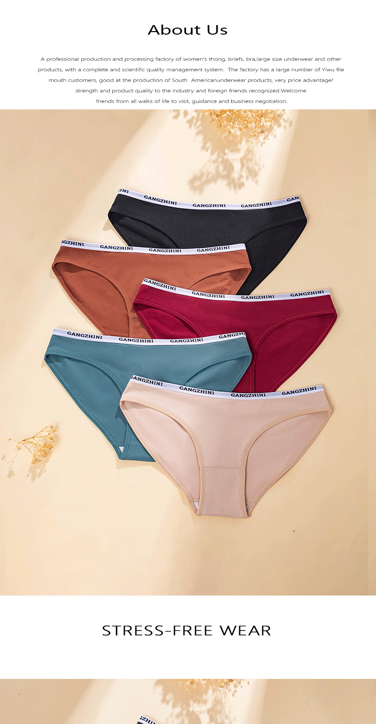 cross-border e-commerce women's briefs solid color letter belt comfortable thread breathable underwear foreign trade supply