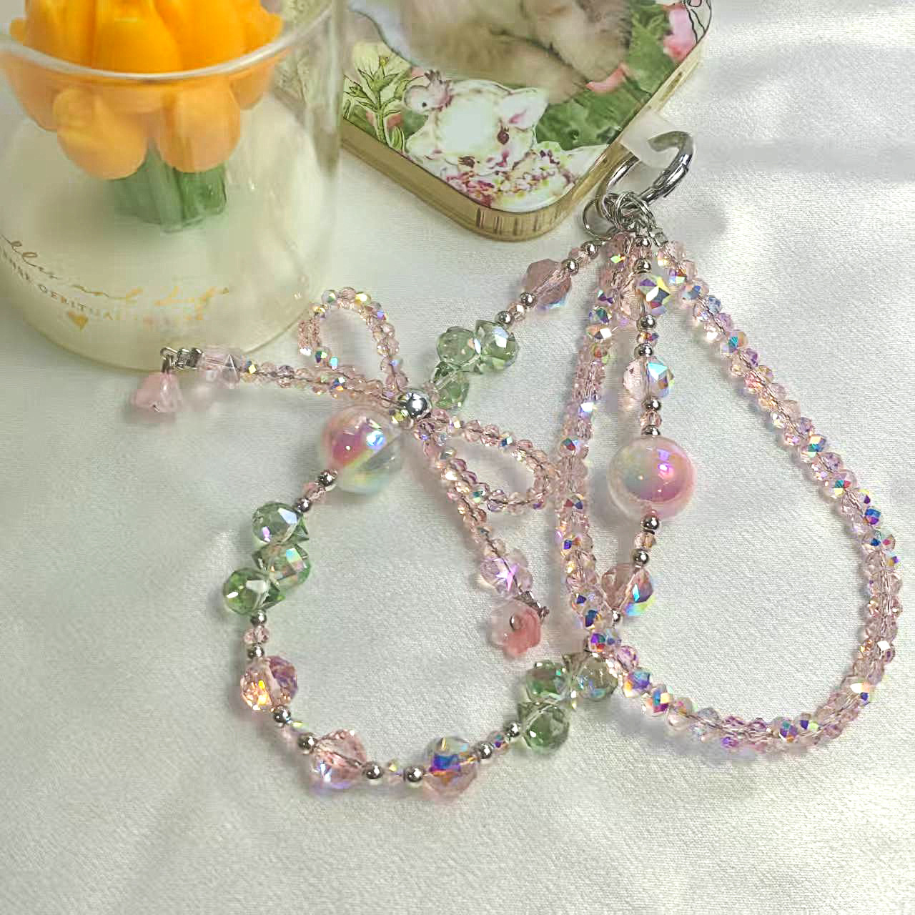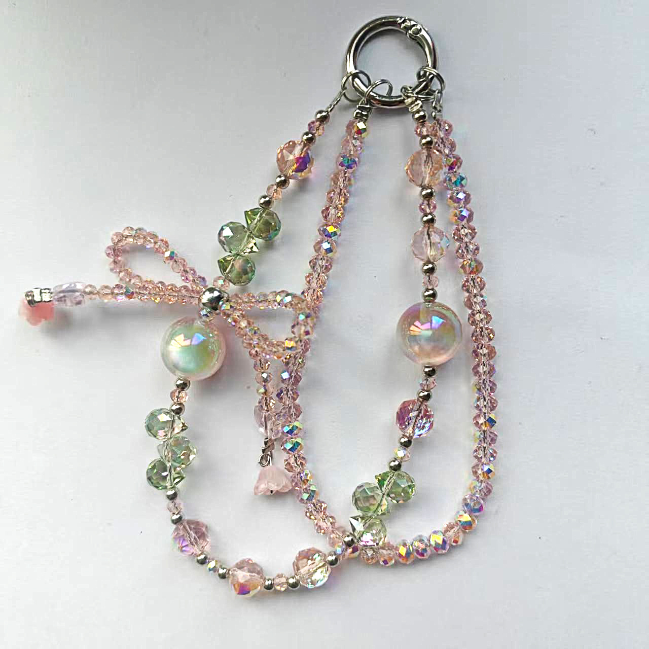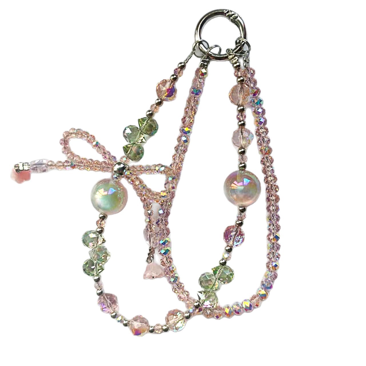 Product Name: Double-Chain Crystal Butterfly Knot Teardrop Crystal Star River Pearl Phone Chain