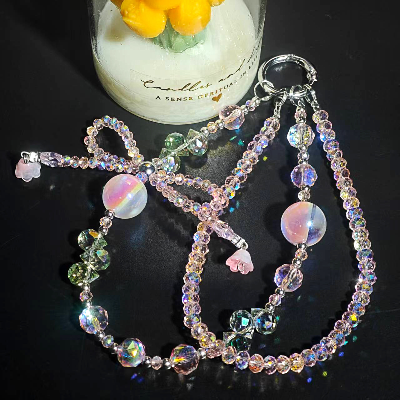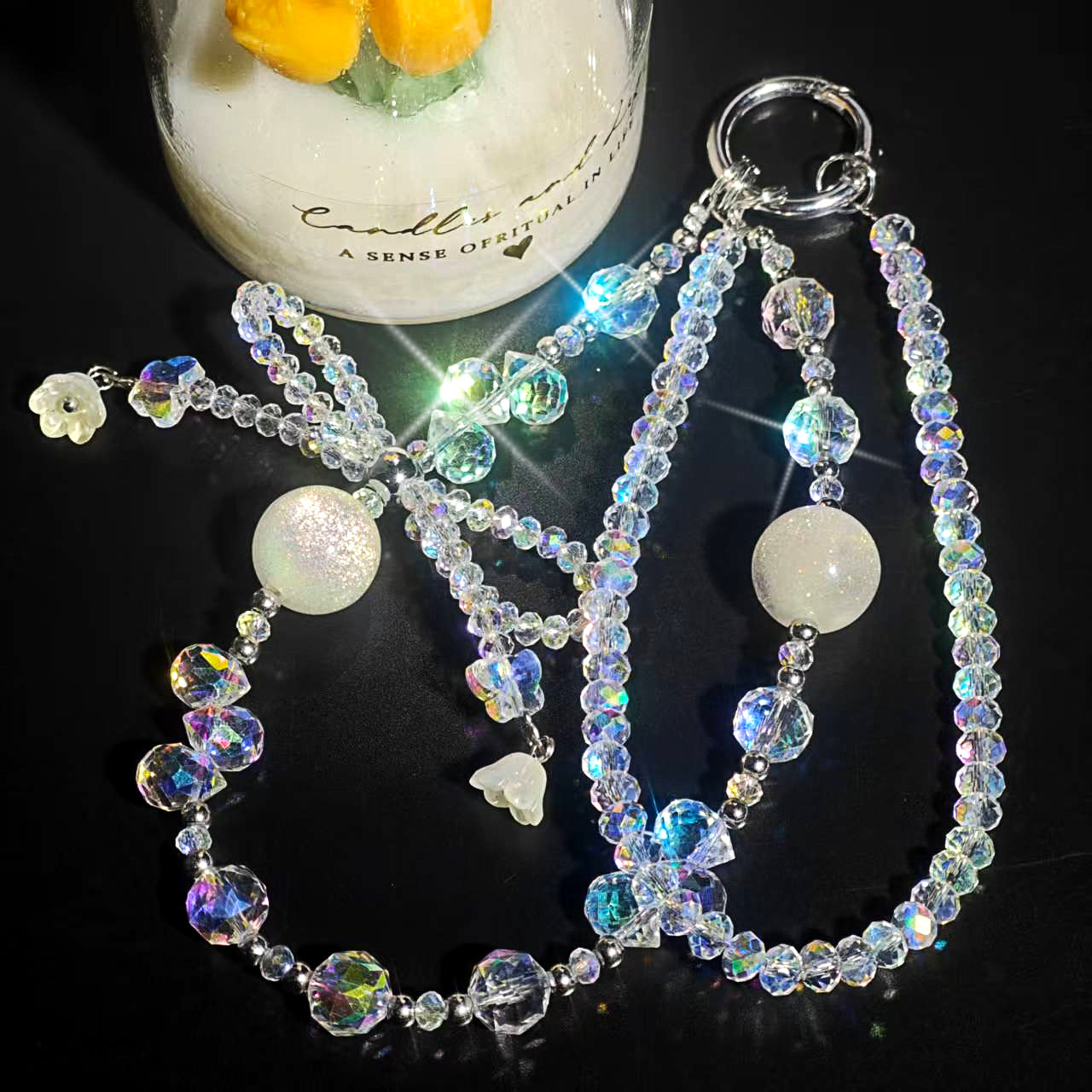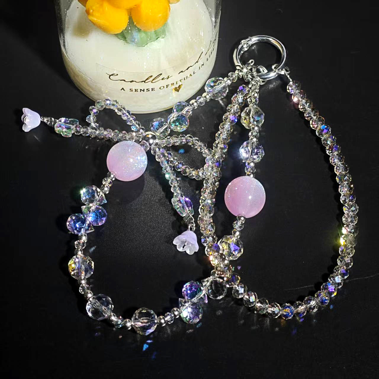 Product Name: Double-Chain Crystal Butterfly Knot Teardrop Crystal Star River Pearl Phone Chain
