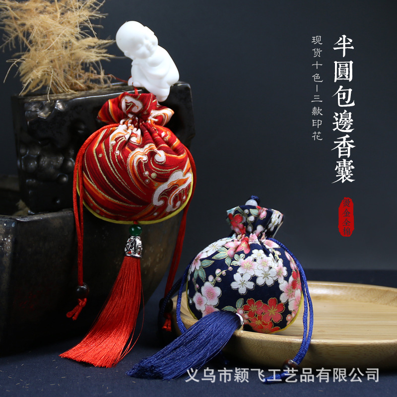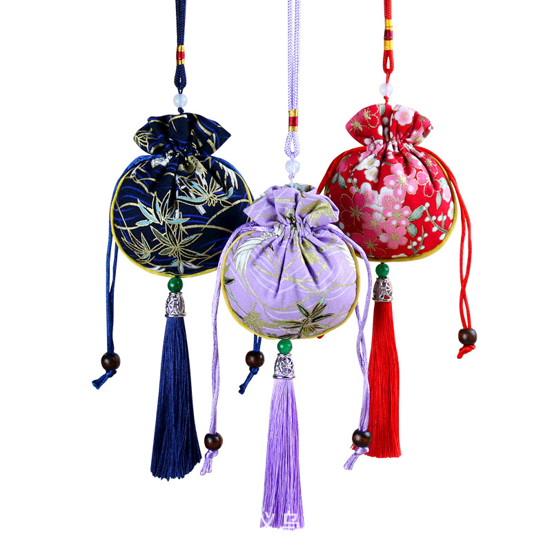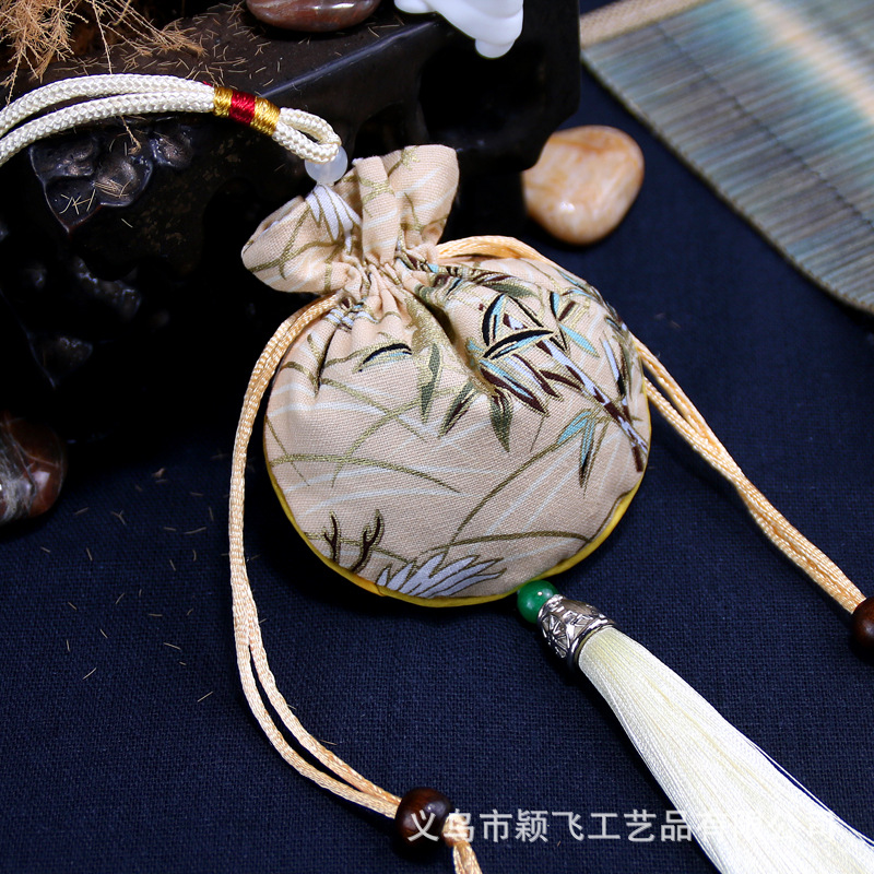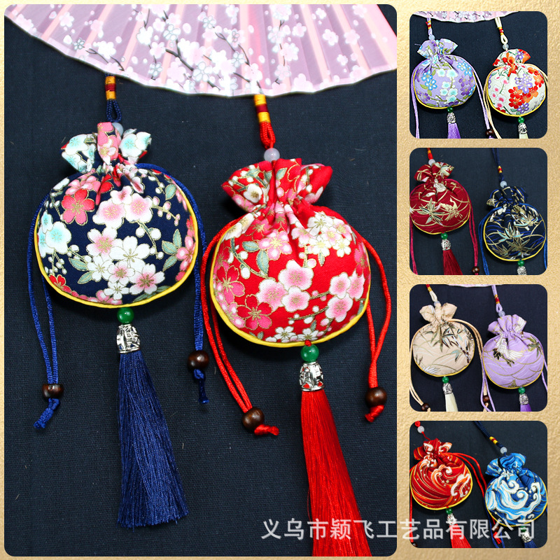 dragon boat festival perfume bag japanese cotton and linen round drawstring pouch tassel sachet empty bag handmade incense bag lucky bag tassel ornament