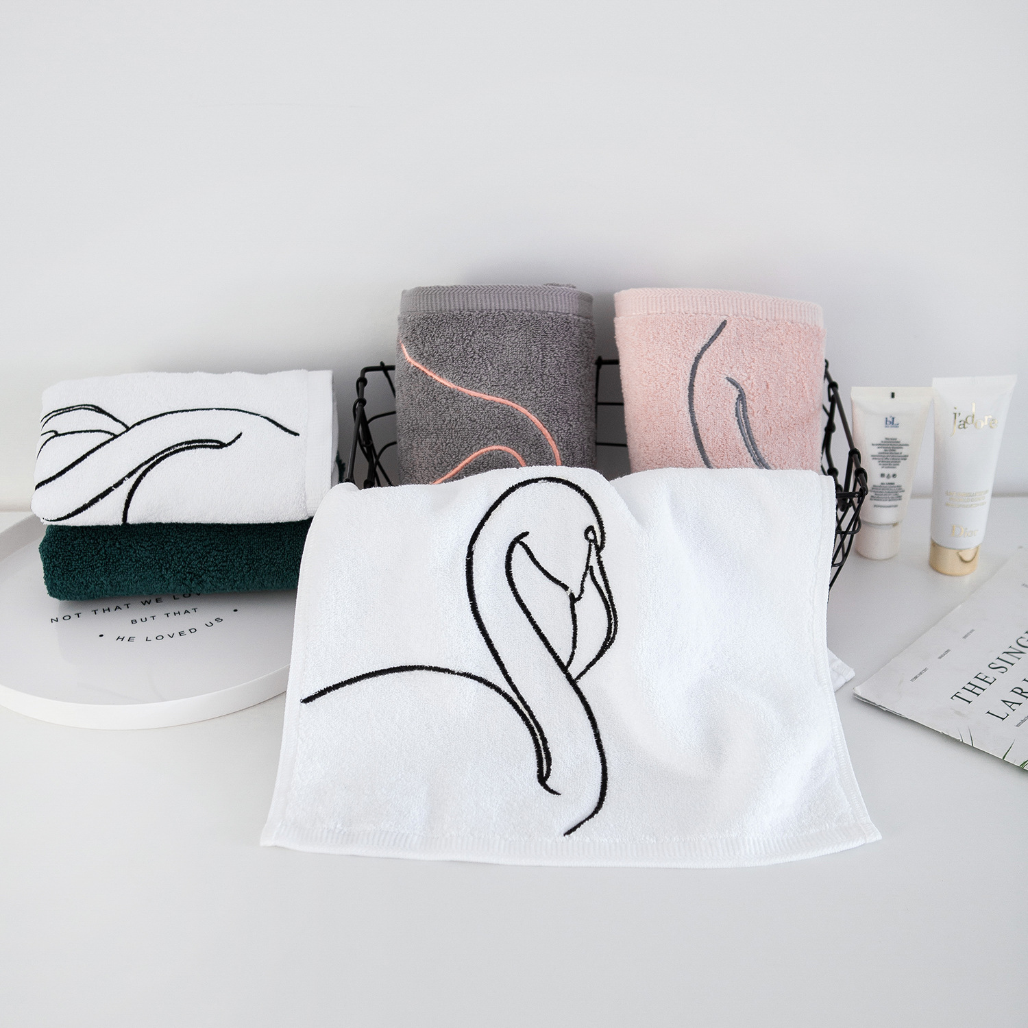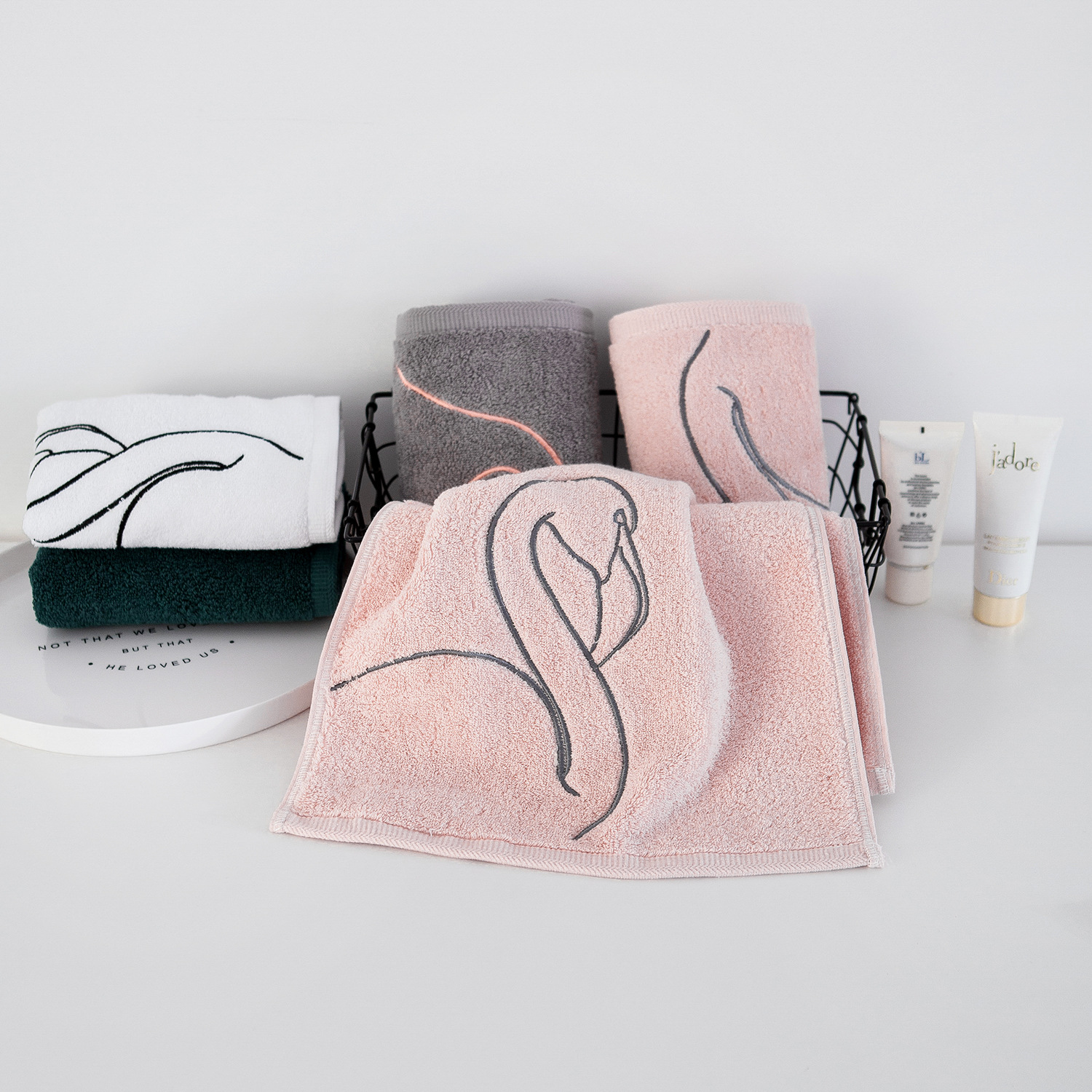 color: white, pink, green, gray