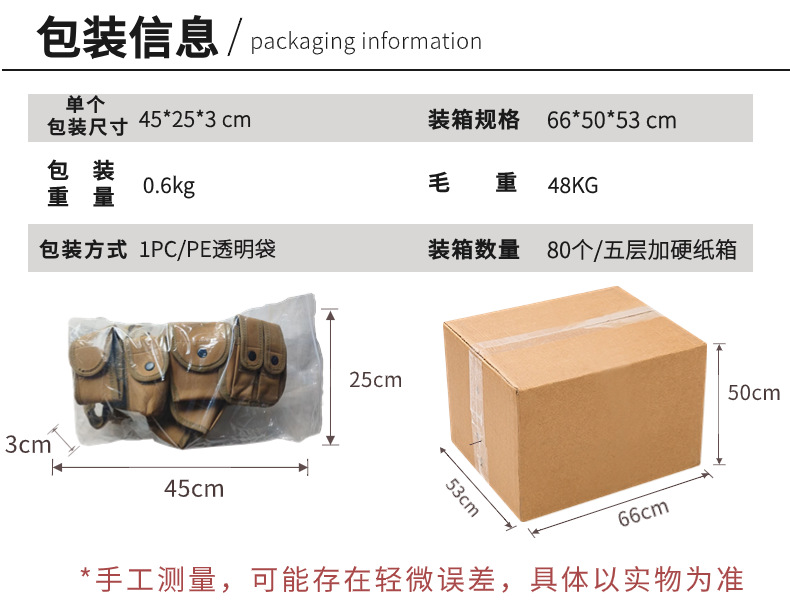 specifications: black, khaki, army green
