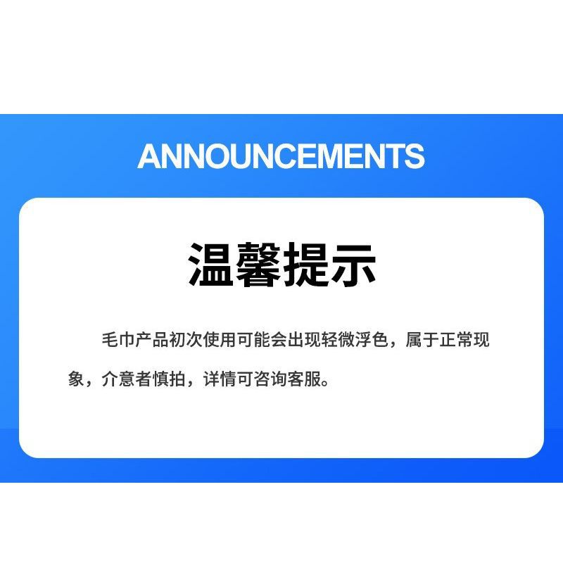 Return and Exchange Policy: For goods with quality issues caused by our company (return shipping costs will be paid by us), we will offer a replacement (with return shipping costs covered by us). However, for non-quality-related returns or exchanges (both return and exchange shipping costs to be paid by the buyer), if the towel is damaged or stained due to washing or intentional damage, or if it affects resale, we will not accept a return or exchange.
