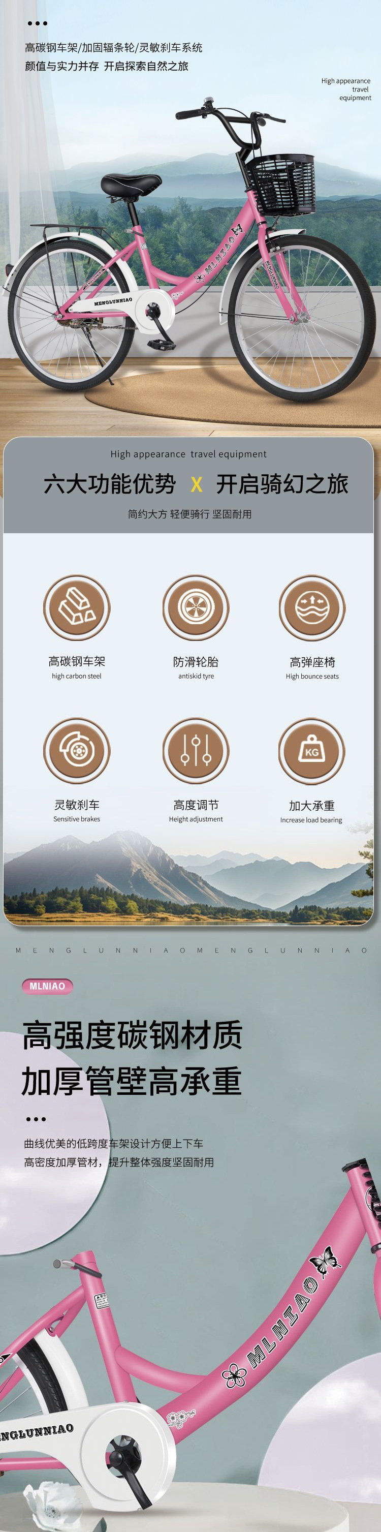by non-folding princess pink top-configured model-22 inches suitable for 138-148cm talls