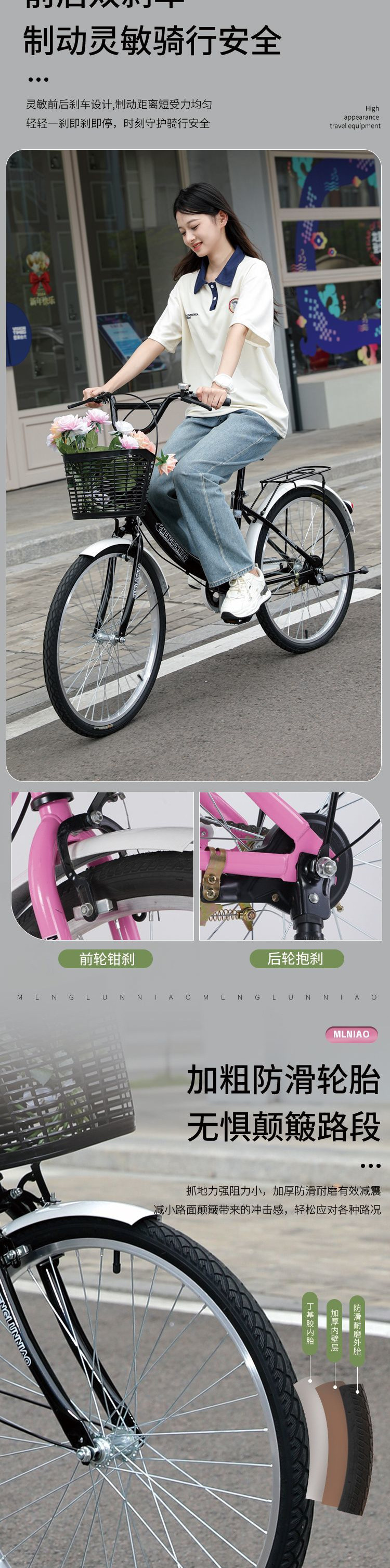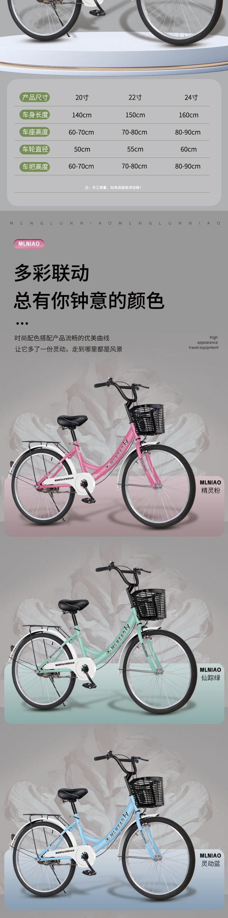by non-folding new green high-fitting-22-inch suitable for height 138-148cm