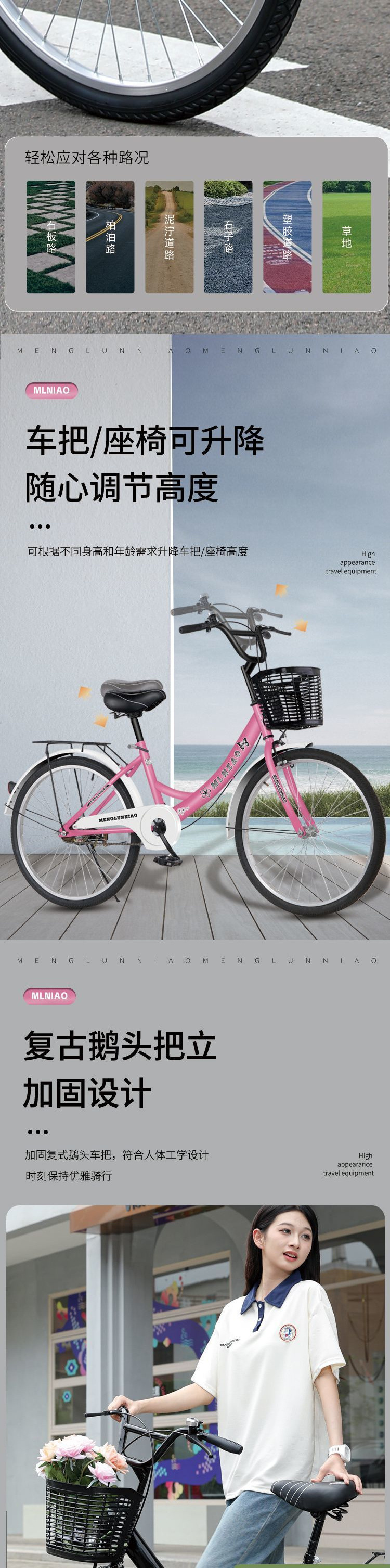 by non-folding pearl white low-fitting-22-inch suitable for height 138-148cm