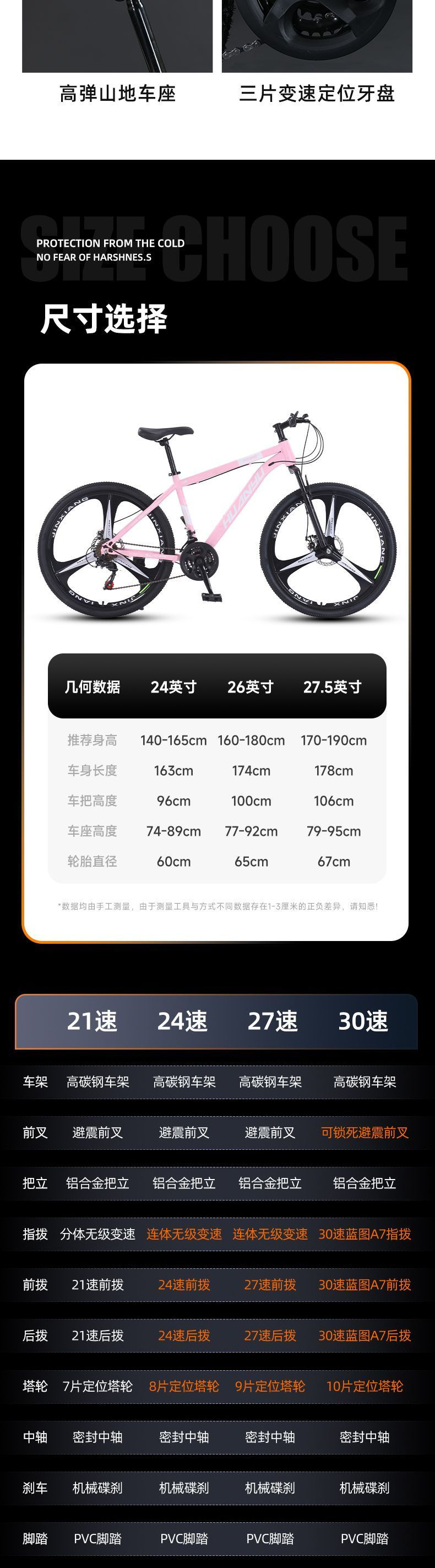 [vibrant orange]-steel frame spoke wheel-27.5 27 speed [height 175-195]]