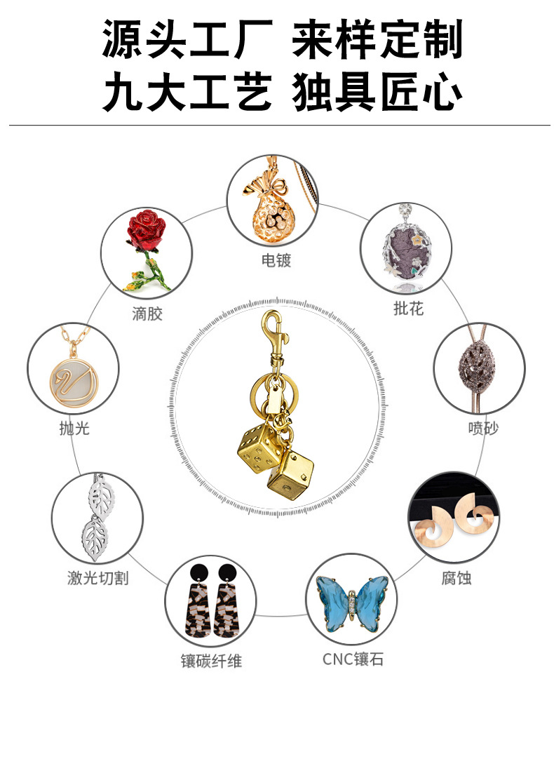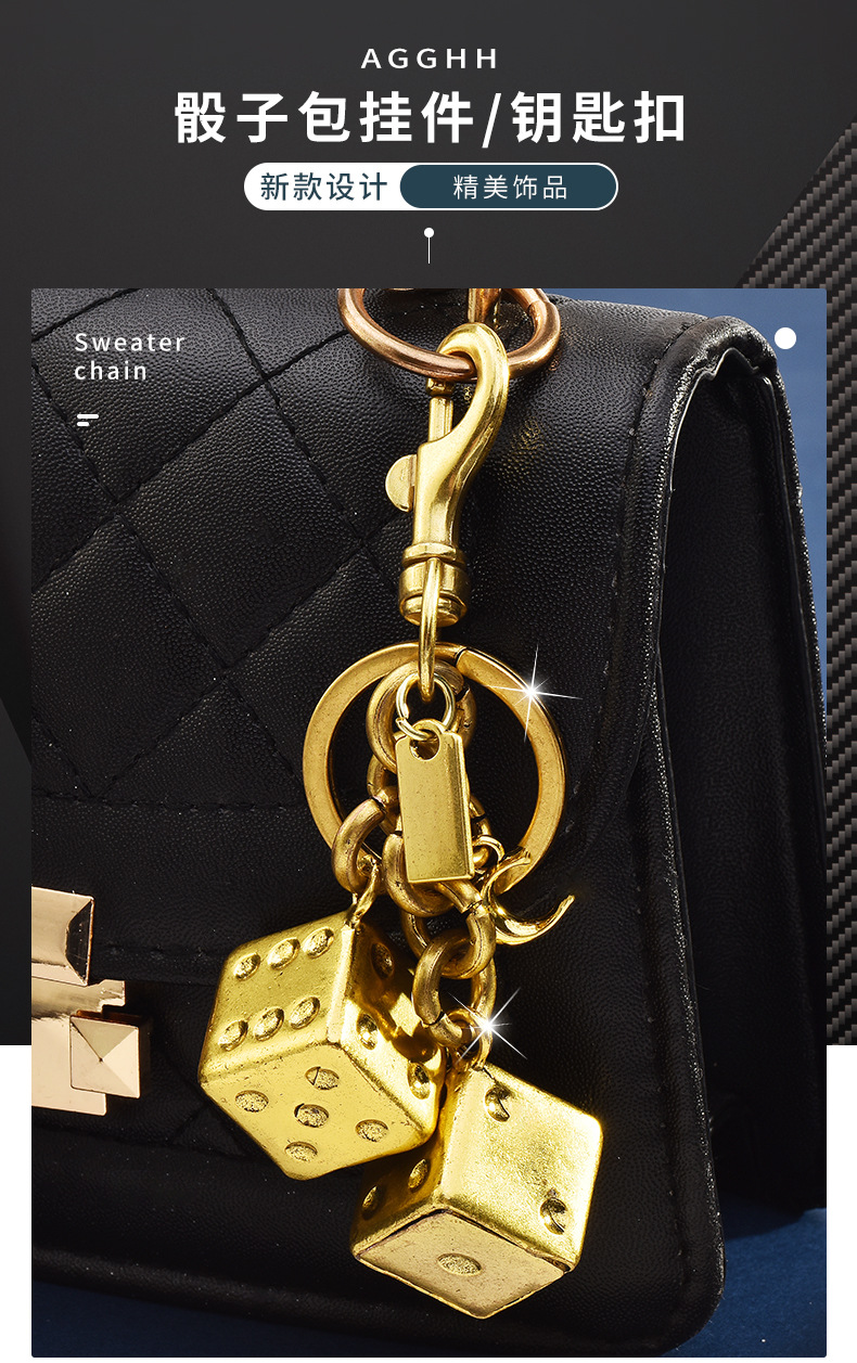 dice skewers three-dimensional keychain gilding
