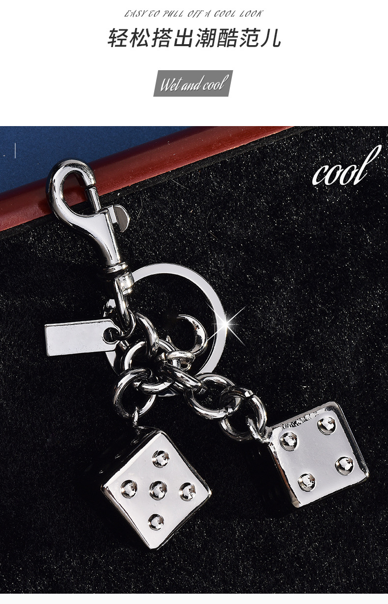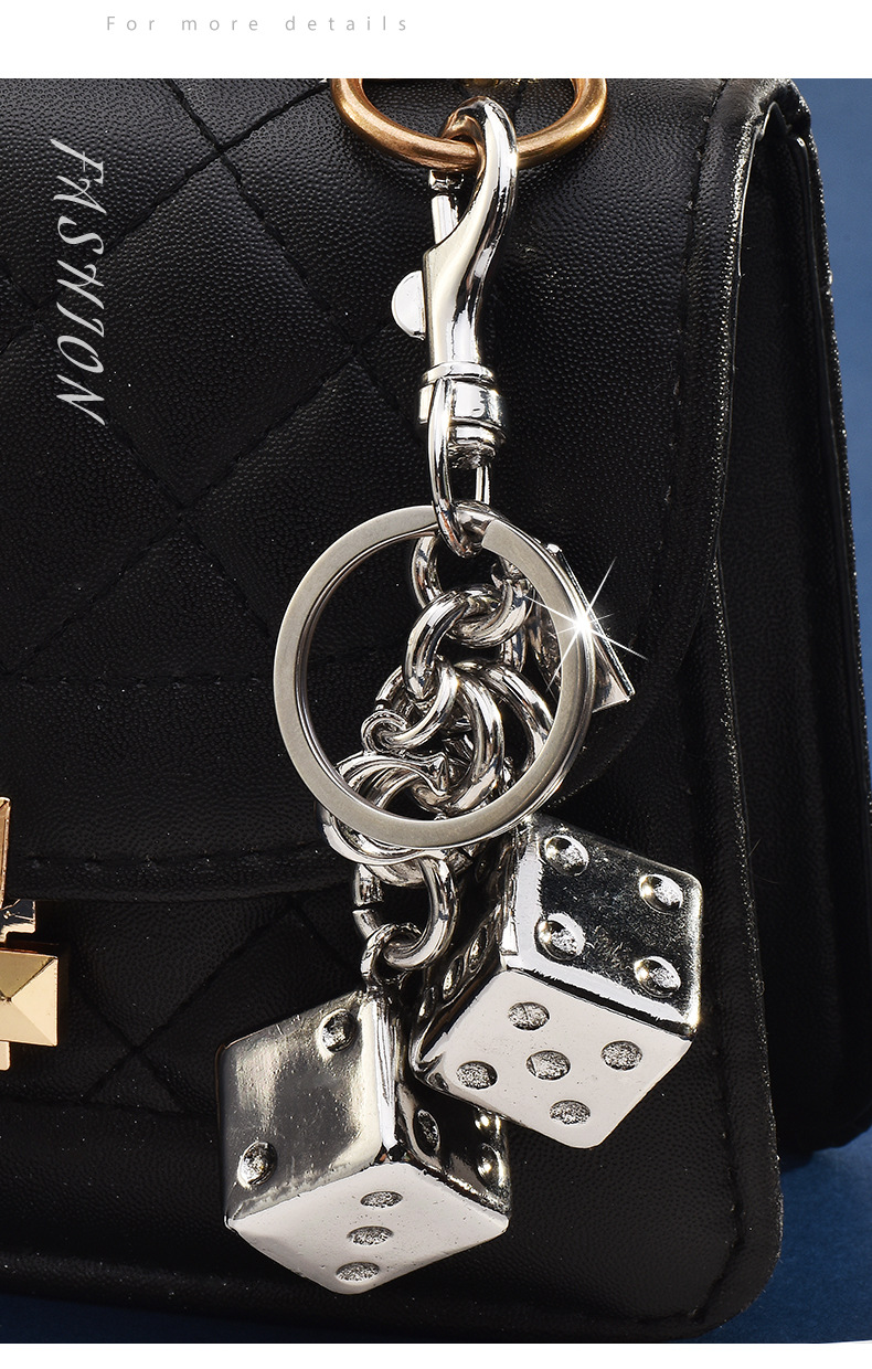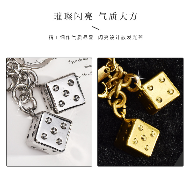 dice skewers three-dimensional keychain silver gilded