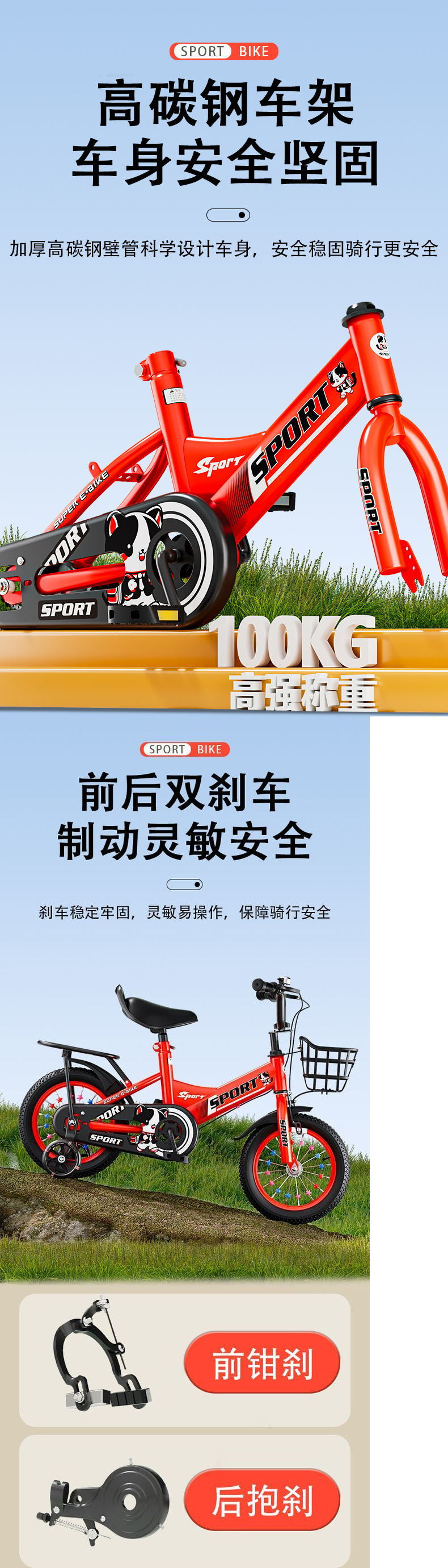 luxury boutique red [rear-seat model + deluxe gift set] – 12-inch, suitable for children 80–95cm tall