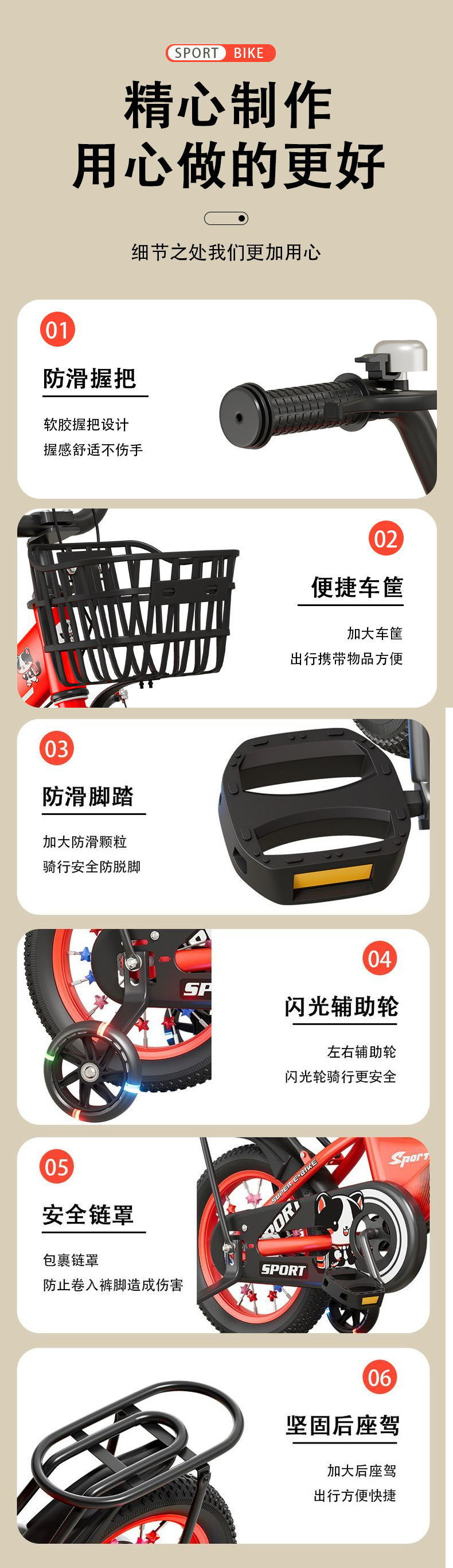 luxury boutique red [rear-seat model + deluxe gift set] – 16-inch, suitable for children 100–125cm tall