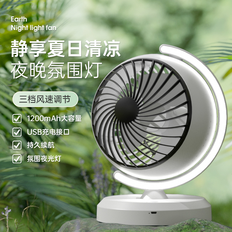 Function Introduction: A great summer travel cool-off item, with night-light atmosphere lighting, suitable for camping in the wild, with a long service life of brushless motor, three-level wind speed, adjustable with one-button operation, and USB convenient charging.