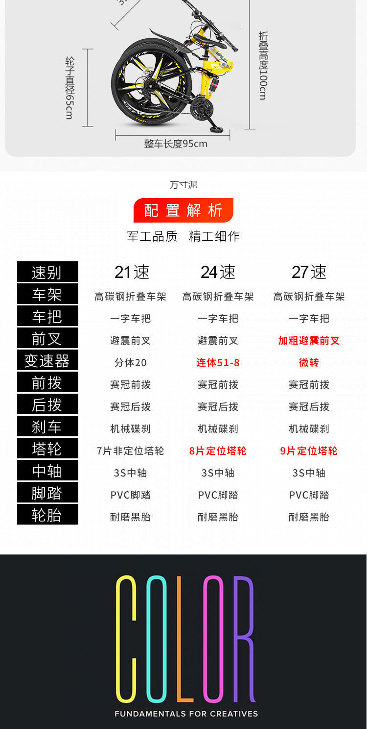 folding model-ten knives-integrated wheel-yellow-26-inch 27-speed ultimate edition value-added buy open