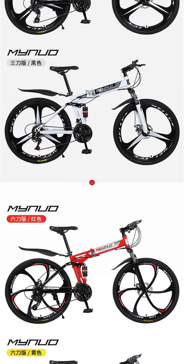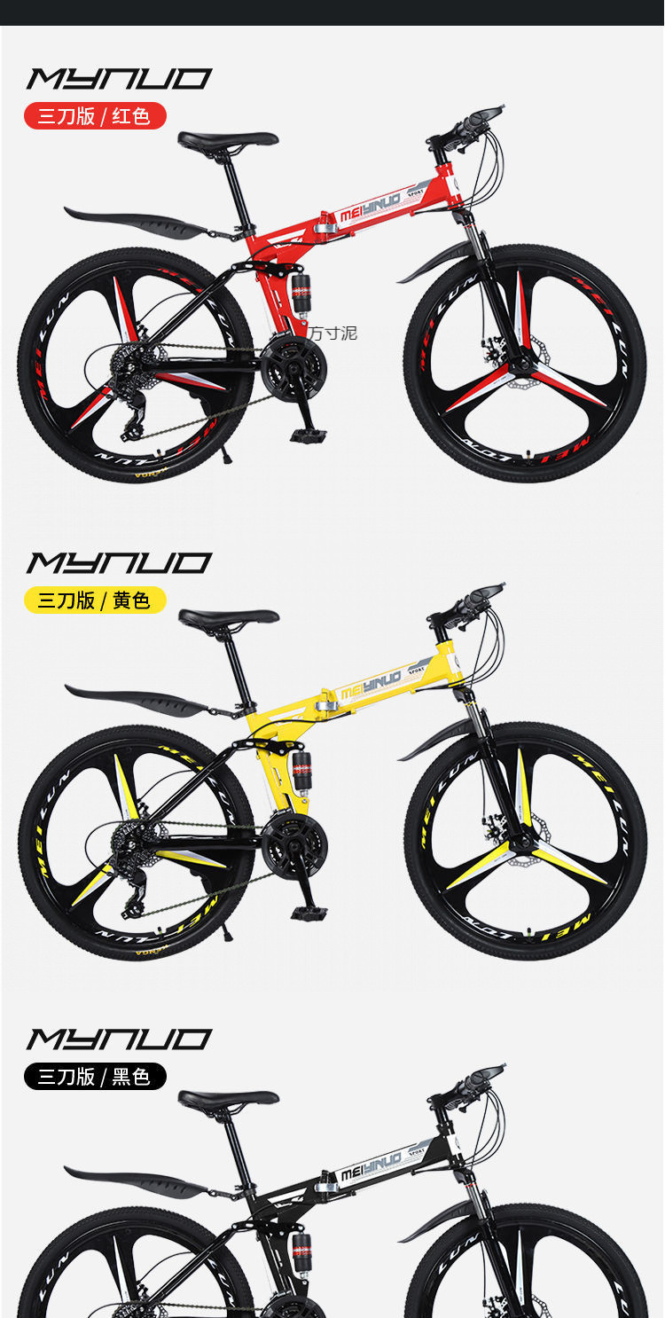 folding model-three knives-integrated wheel-yellow-26-inch 21-speed standard version value buying