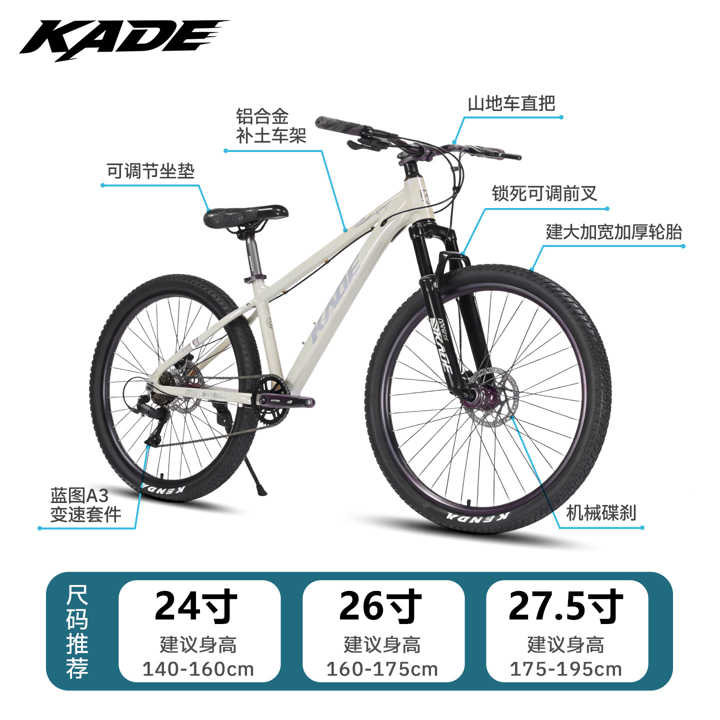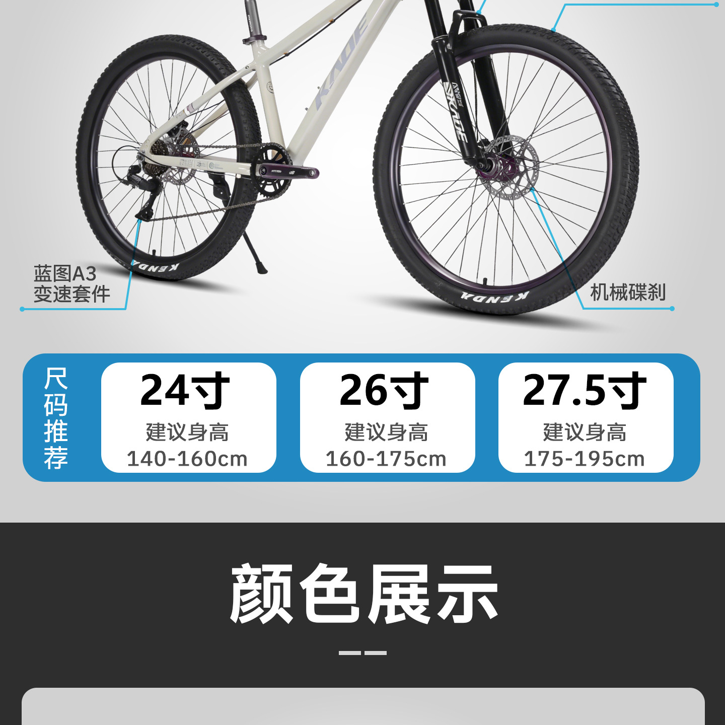 size: 24-inch, 26-inch, 27.5-inch
