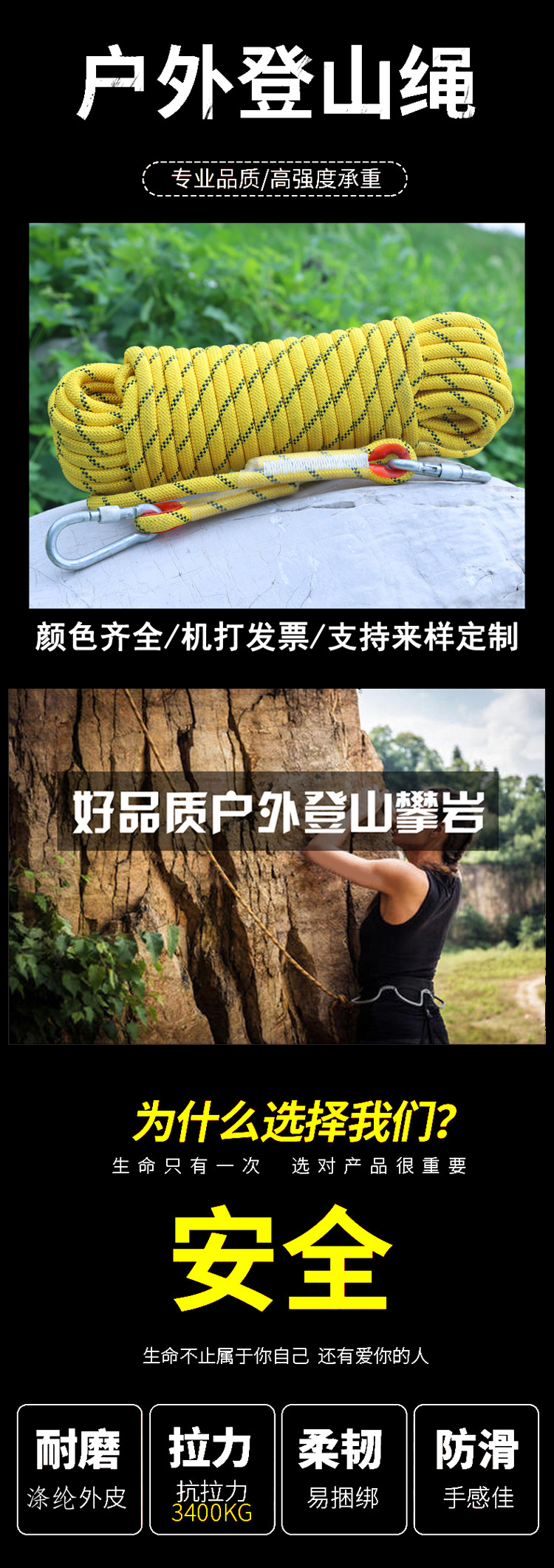 | 10mm, 50-meter single rope (sewing buckle and double hooks not included) (please note the color when placing your order; if you place a private order, we will ship orange.) | CN¥ 65.0 |