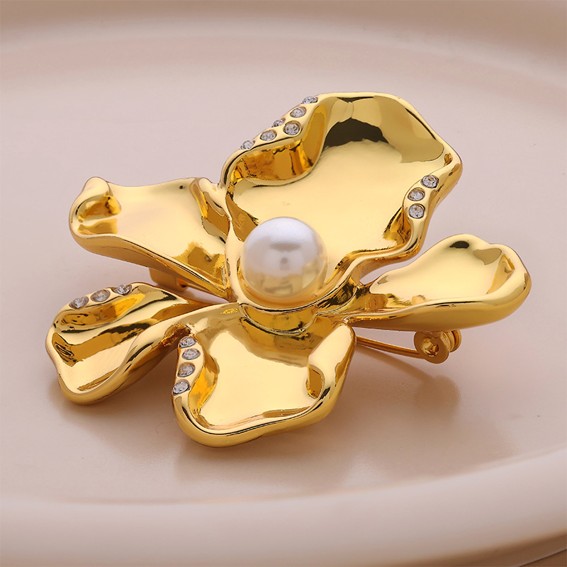 pearl flower brooch shirt suit high-grade accessories corsage collar pin classic style alloy decorative pin