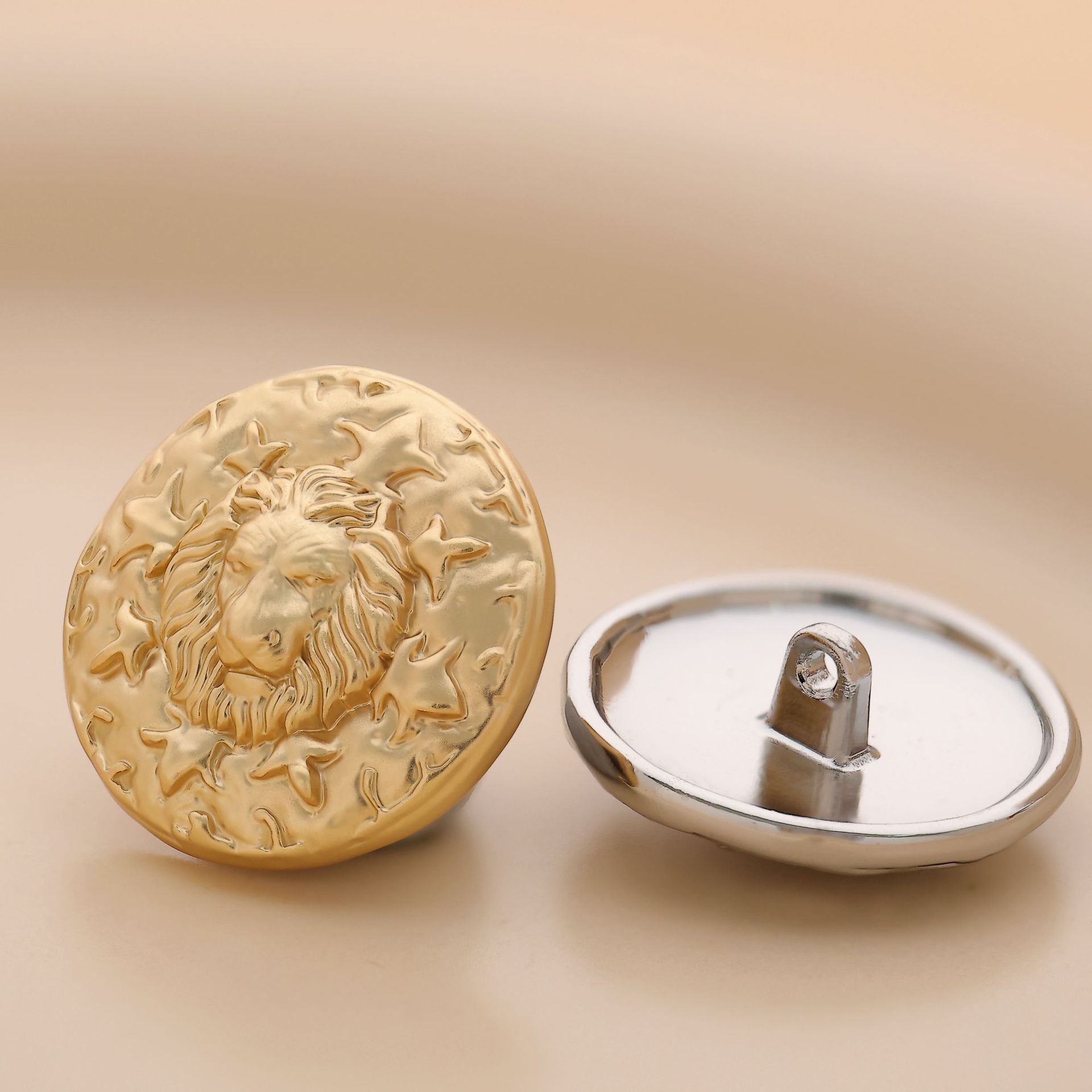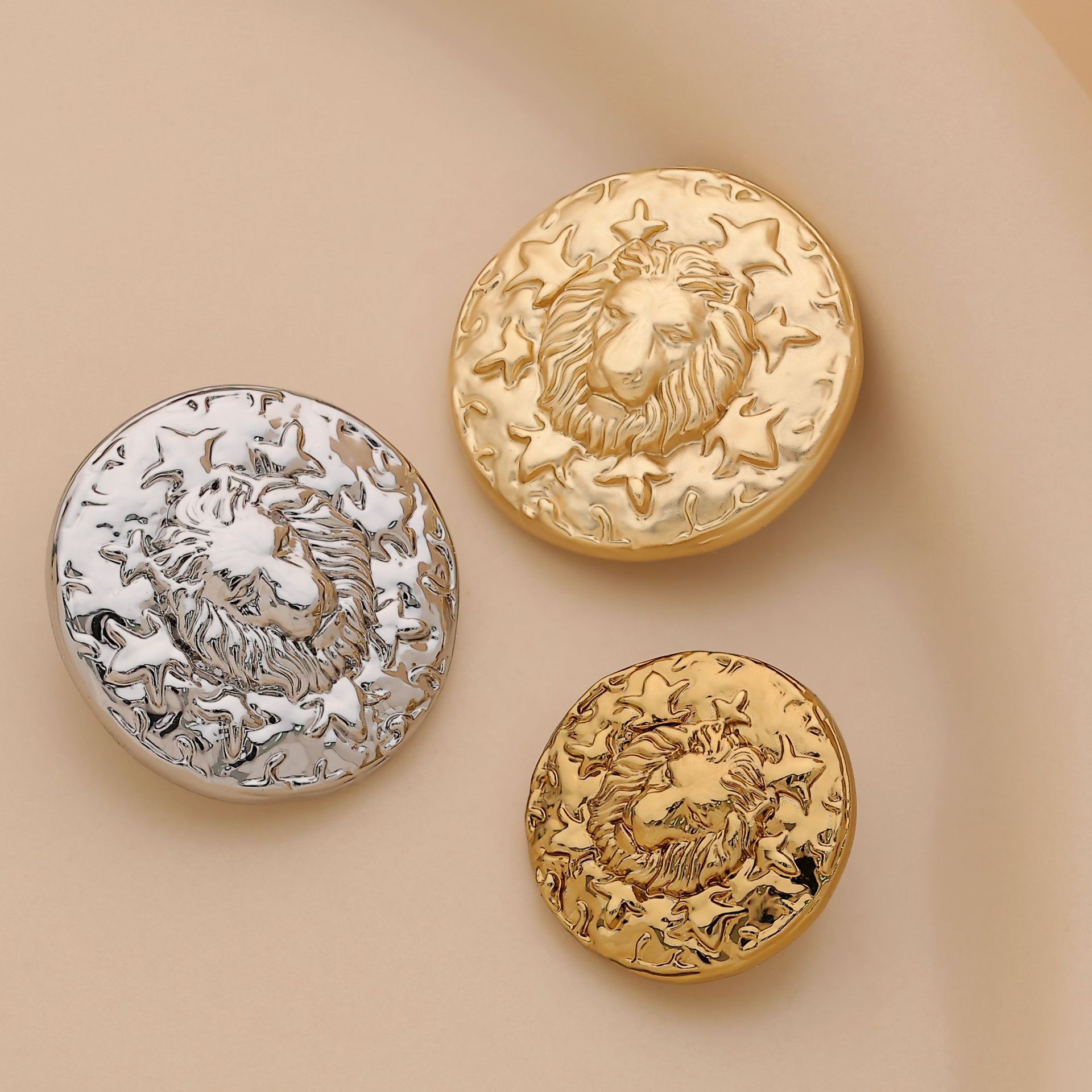 woolen shirt west sweaters coat clip decorative buttons classic style convex lion's head metal hand sewing button