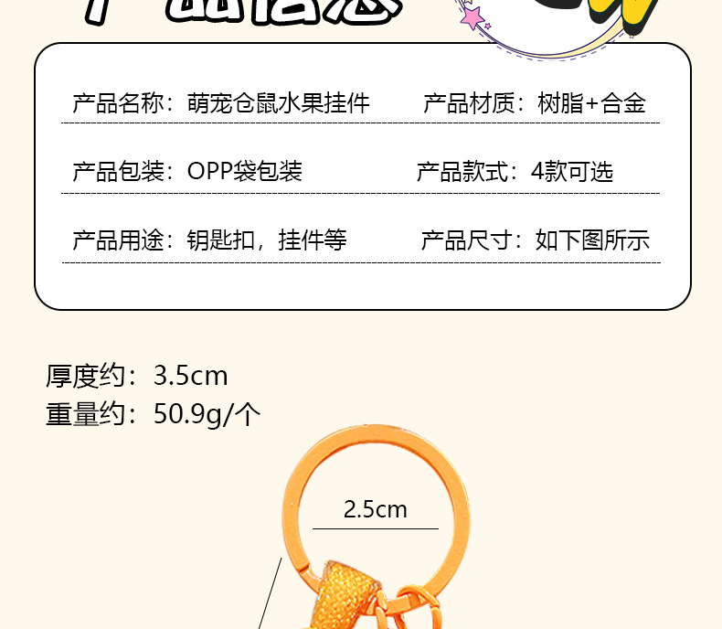 cute pet hamster fruit pendant-orange