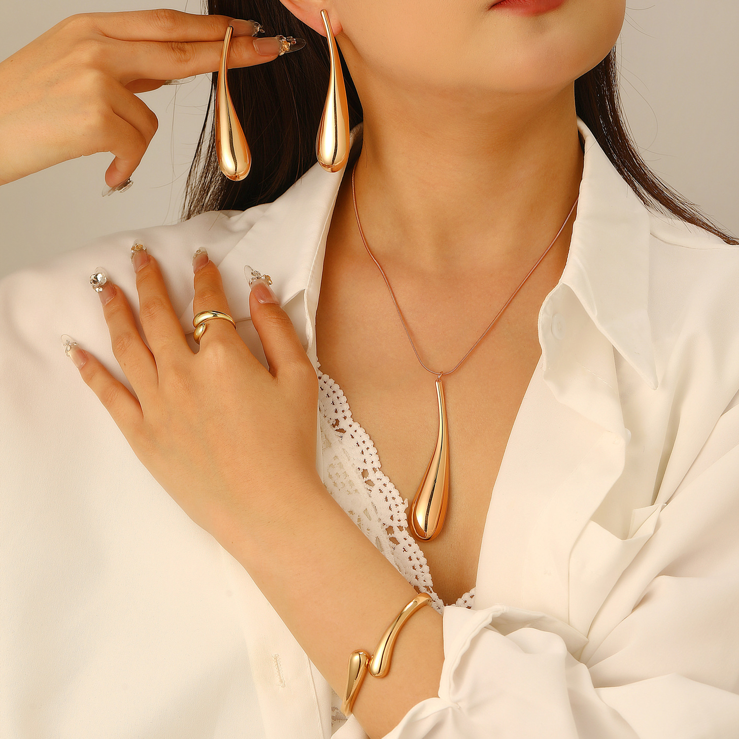 11 glossy earrings four-piece set