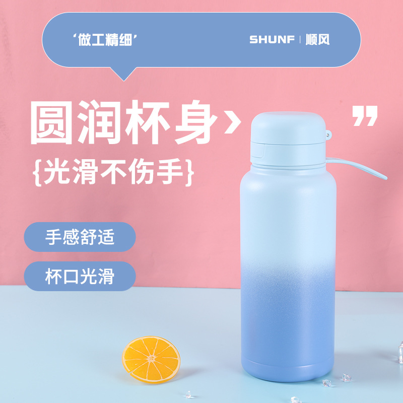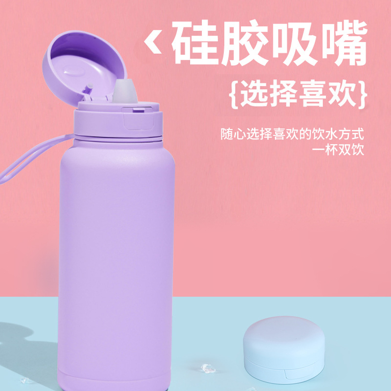 Fashion Lid-Popping Straight-Sip Cup: Inner and Outer 304 Stainless Steel Insulated Bottle for Men and Women Students, Simple and Portable with Handles, Insulated Bottle