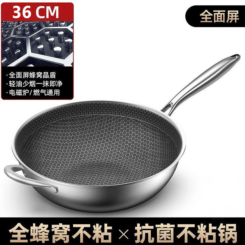 36cm stainless steel double handle wok + explosion-proof vertical lid