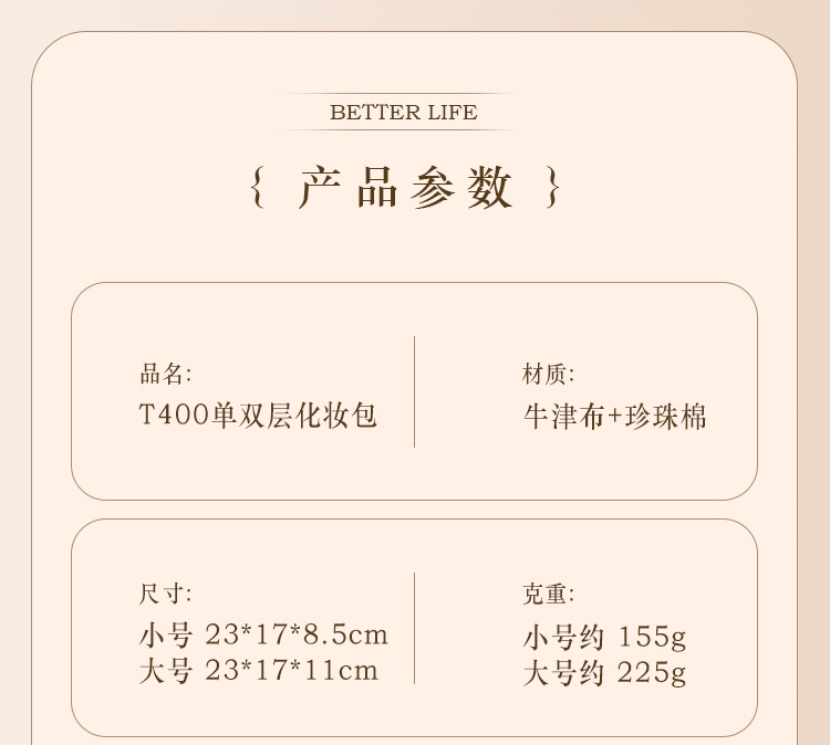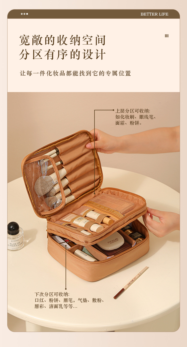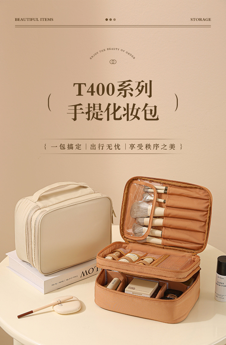 t400 double-layer cosmetic bag-chocolate color