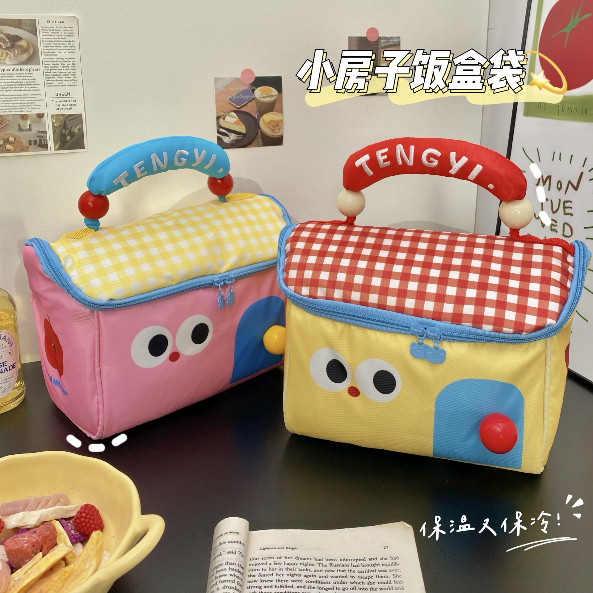 cartoon house insulated bag-pink