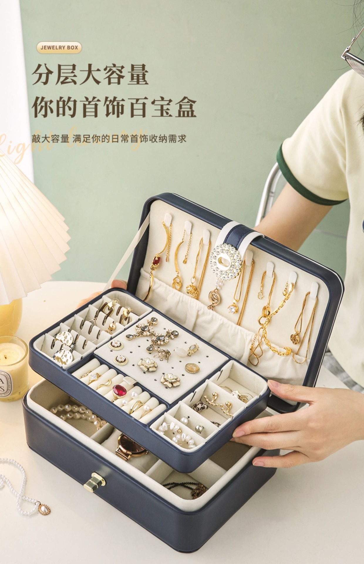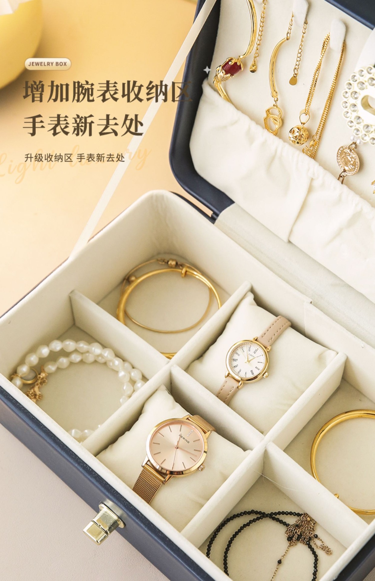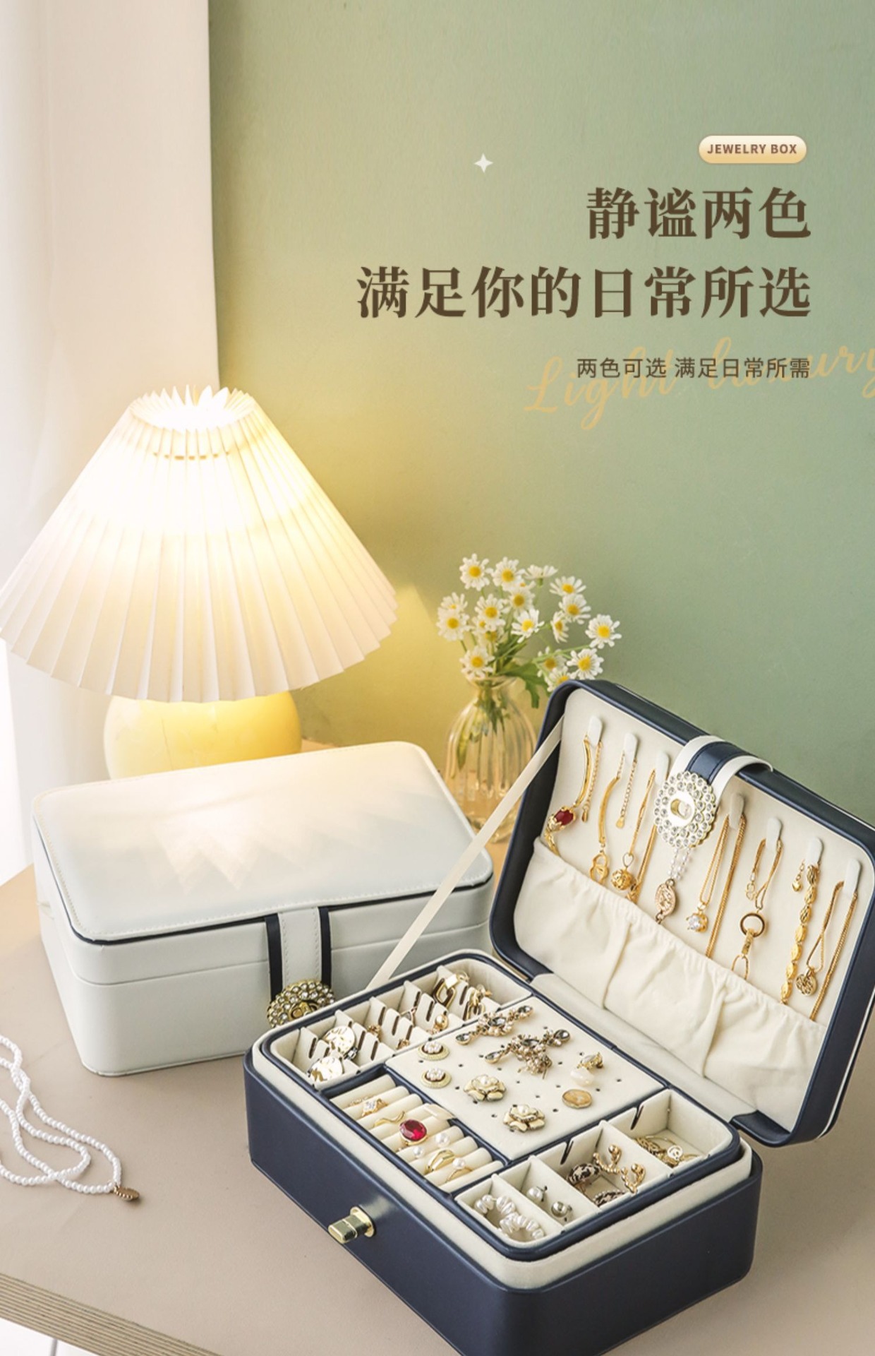 upgraded-white double layer jewelry box